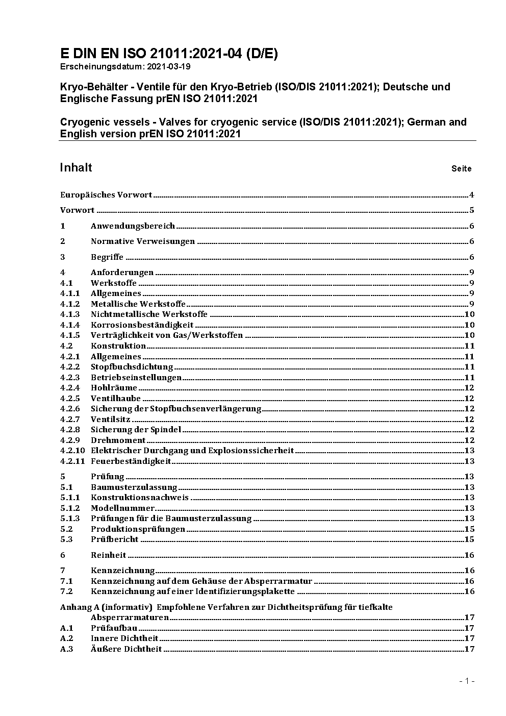 Cryogenic vessels - Valves for cryogenic service (ISO/DIS 21011:2021); German and English version prEN ISO 21011:2021