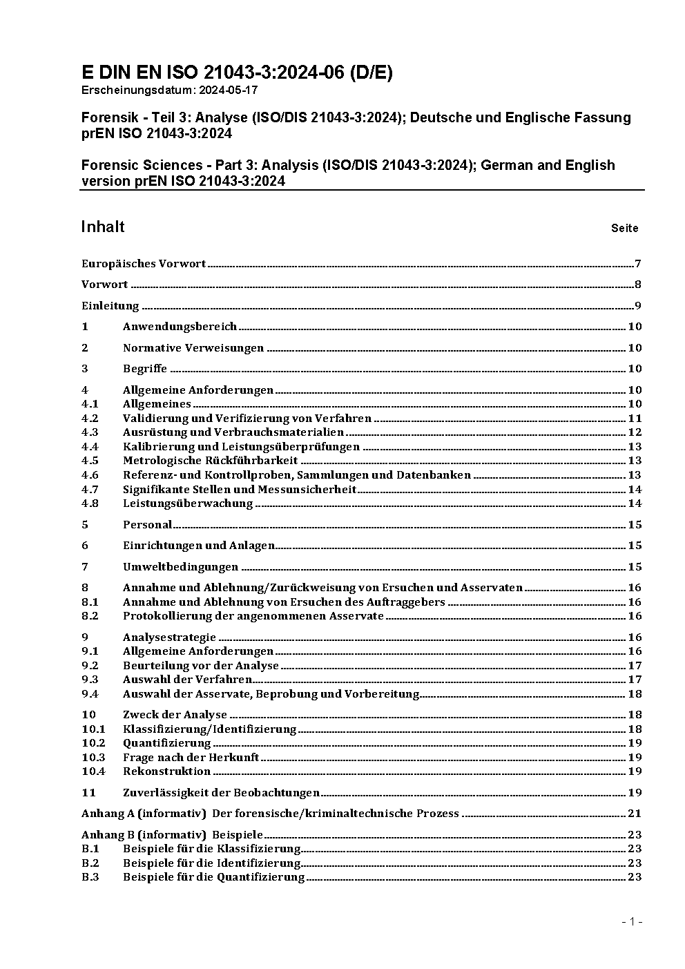 Forensic Sciences - Part 3: Analysis (ISO/DIS 21043-3:2024); German and English version prEN ISO 21043-3:2024