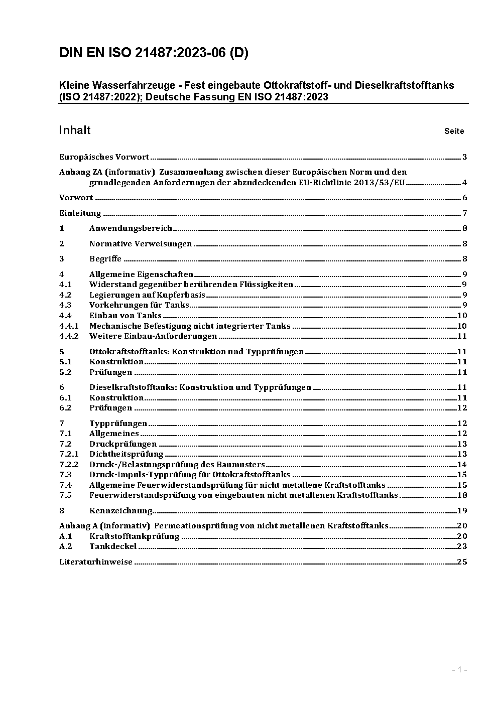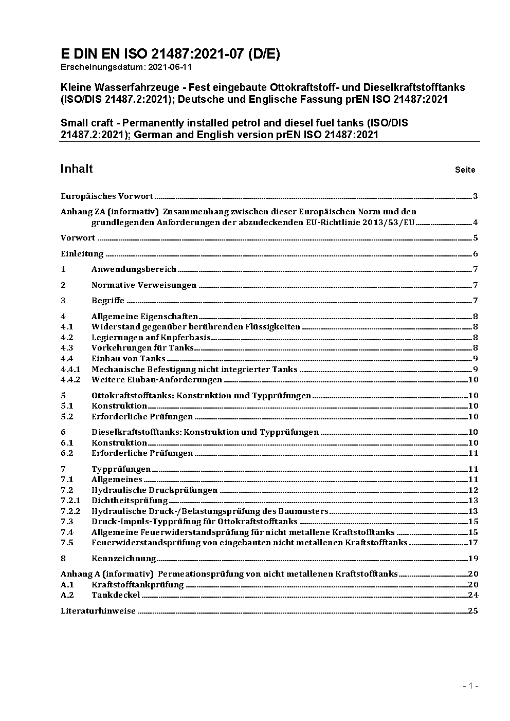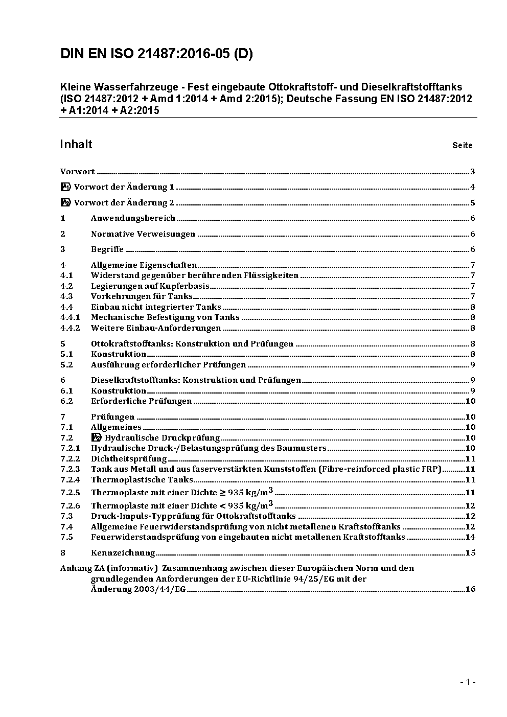 DIN EN ISO 21487/A1 modifies Clause 7.1 to clarify which accessories have to be included in the leakage tests of tanks.