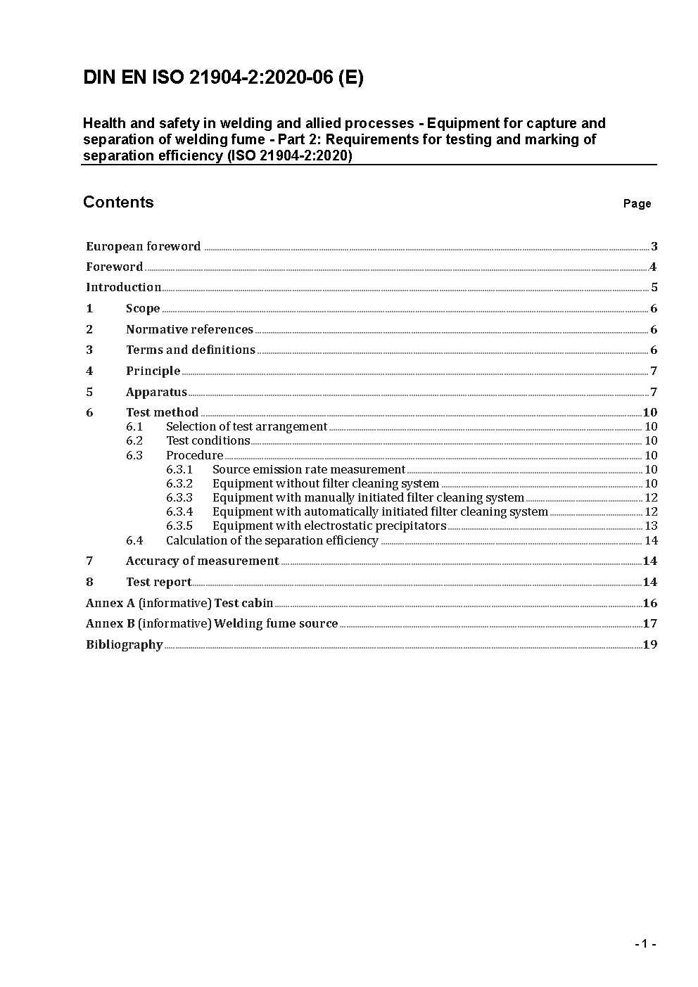 Health and safety in welding and allied processes - Equipment for capture and separation of welding fume - Part 2: Requirements for testing and marking of separation efficiency (ISO/DIS 21904-2:2019); German and English version prEN ISO 21904-2:2019