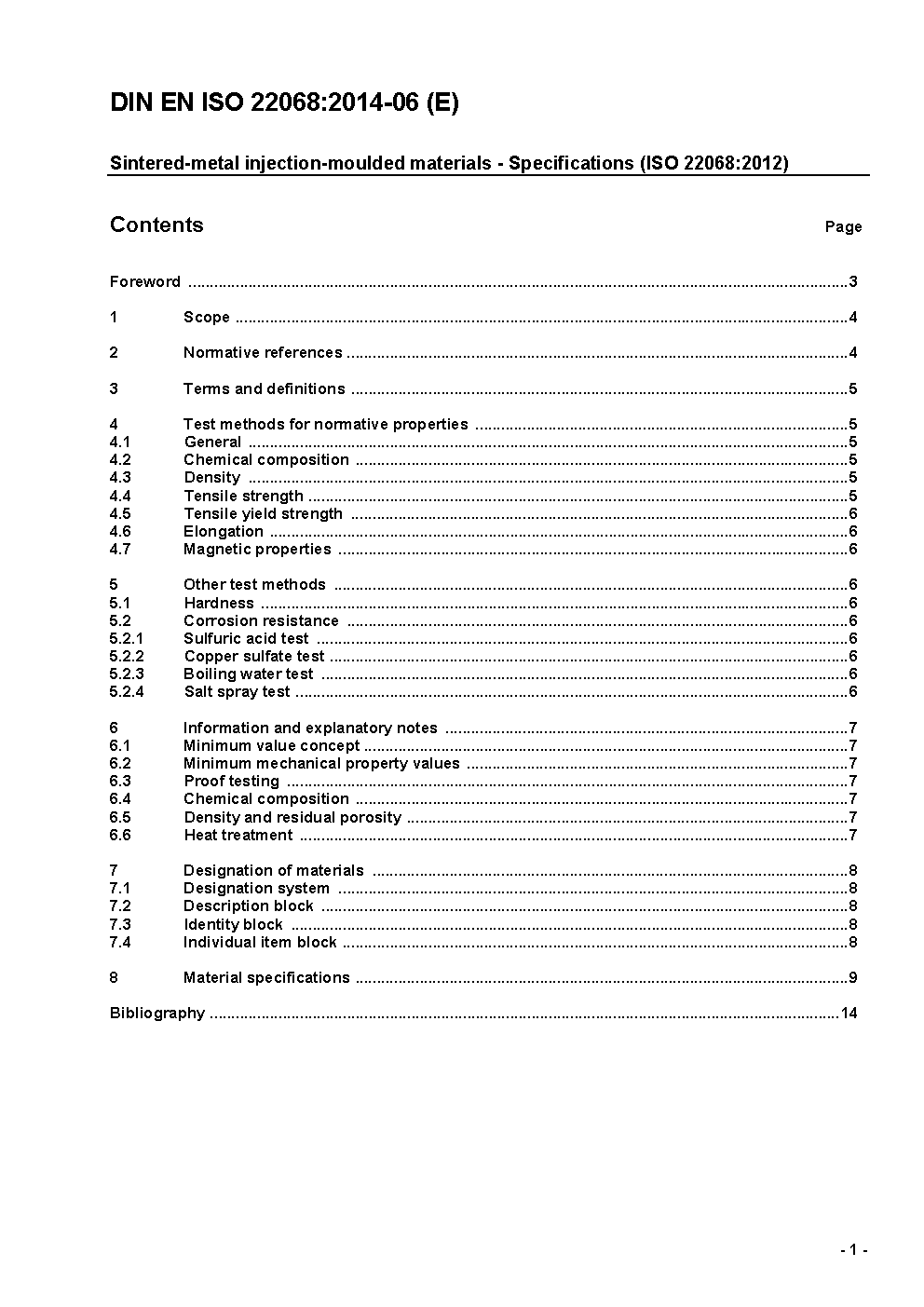 Sintered-metal injection-moulded materials - Specifications (ISO 22068:2012); German version FprEN ISO 22068:2013