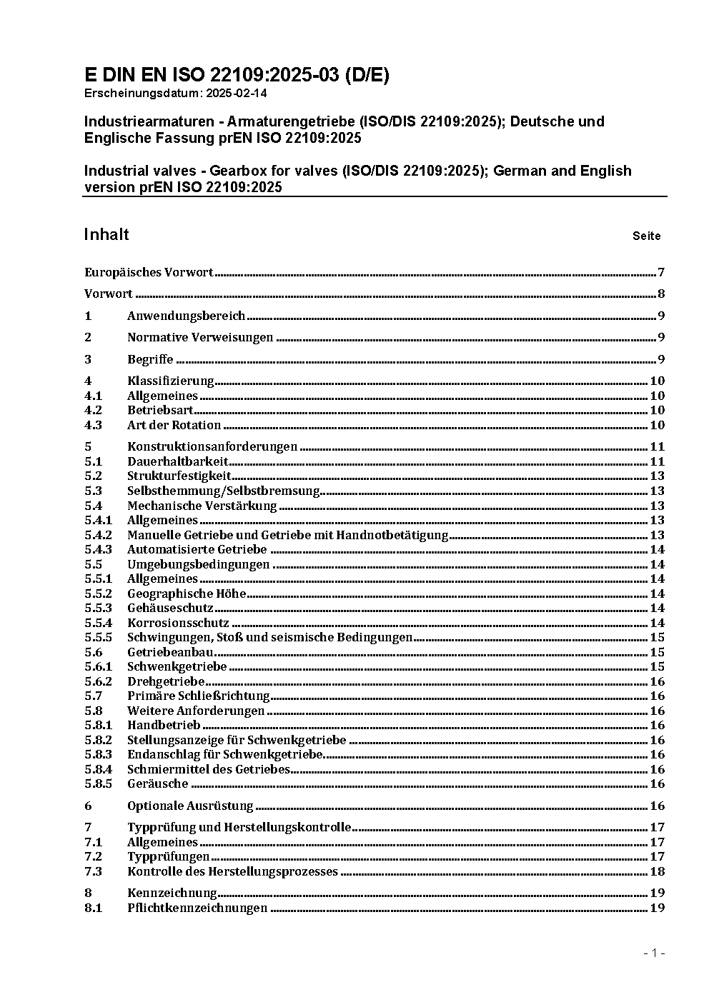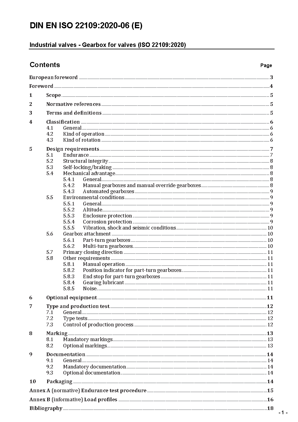 Industrial valves - Gearbox for valves (ISO 22109:2020); German version EN ISO 22109:2020
