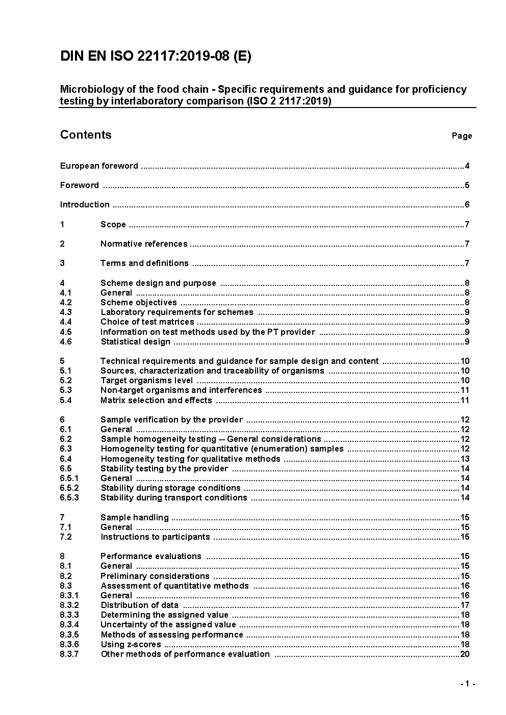 Microbiology of the food chain - Specific requirements and guidance for proficiency testing by interlaboratory comparison (ISO/DIS 22117:2018); German and English version prEN ISO 22117:2018