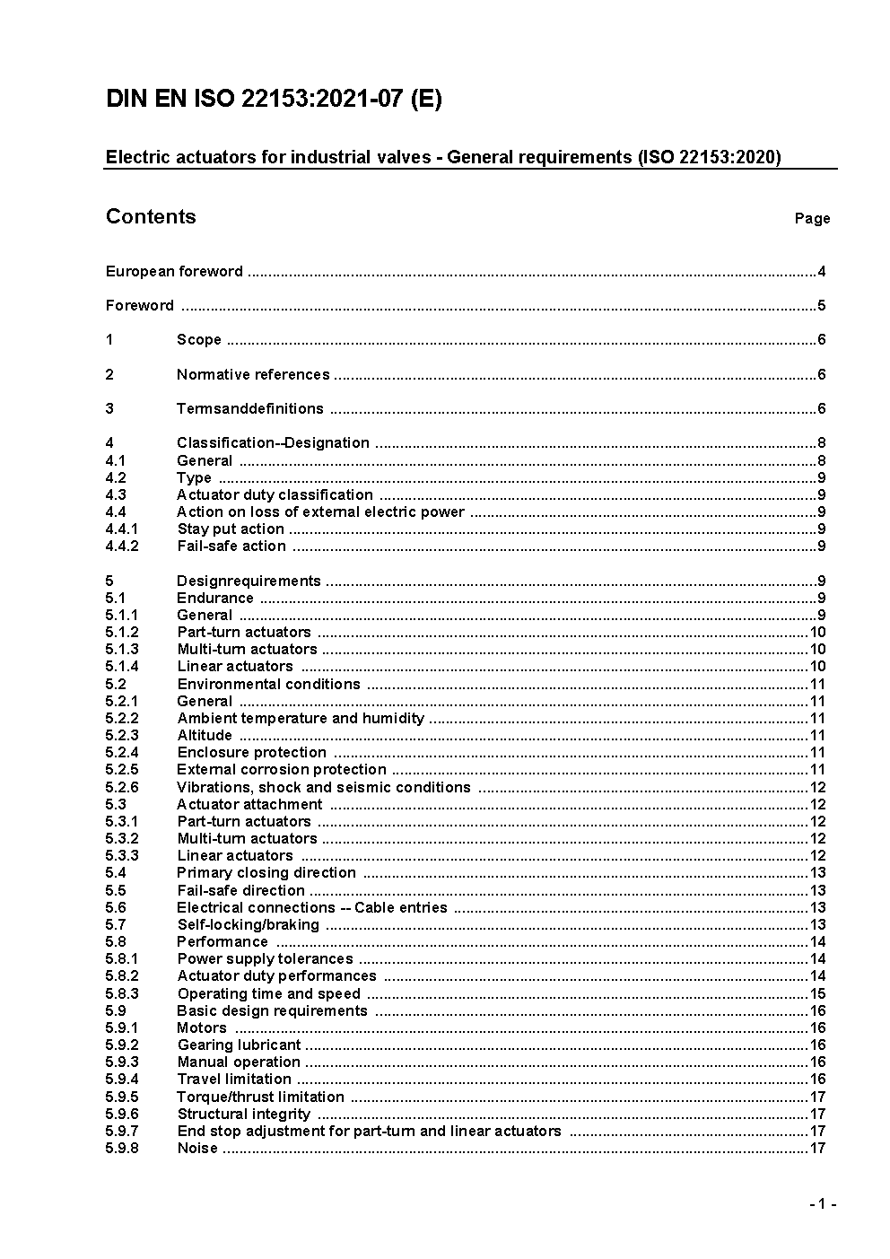 Electric actuators for industrial valves - General requirements (ISO 22153:2020); German version EN ISO 22153:2021