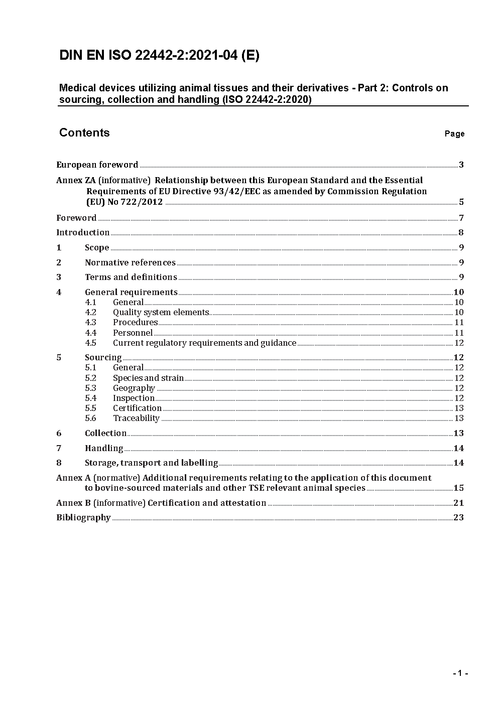 This Part of ISO 22442 specifies requirements for controls on the sourcing, collection and handling (which includes storage and transport) of animals and tissues for the manufacture of medical devices utilizing materials of animal origin, other than in vitro diagnostic medical devices.