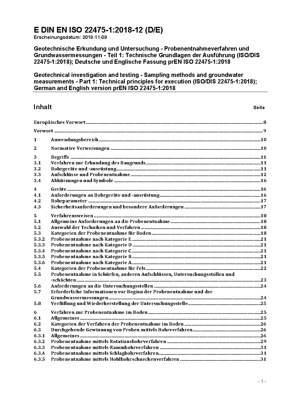 Prévu pour remplacer DIN EN ISO 22475-1 (2007-01).