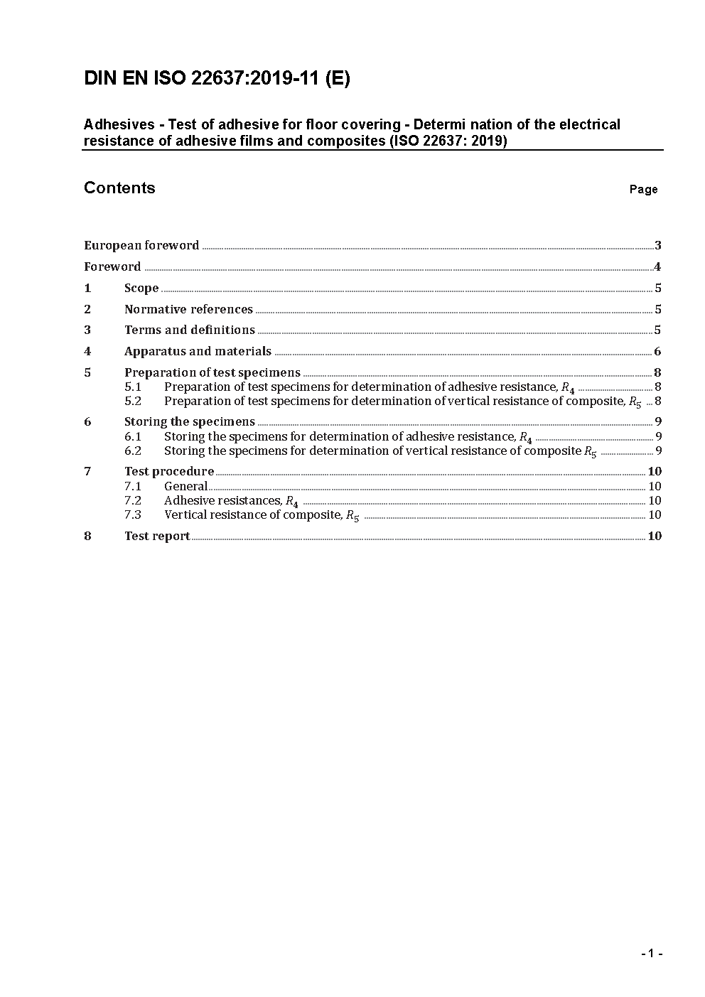 Adhesives - Test of adhesive for floor covering - Determination of the electrical resistance of adhesive films and composites (ISO 22637:2019); German version EN ISO 22637:2019