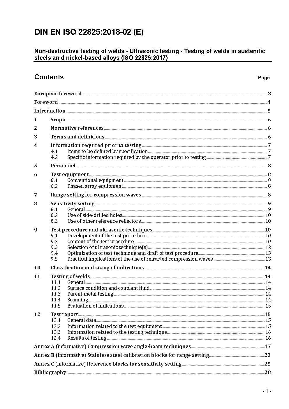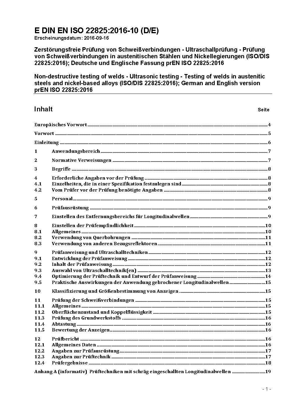 Non-destructive testing of welds - Ultrasonic testing - Testing of welds in austenitic steels and nickel-based alloys (ISO 22825:2012); German version EN ISO 22825:2012