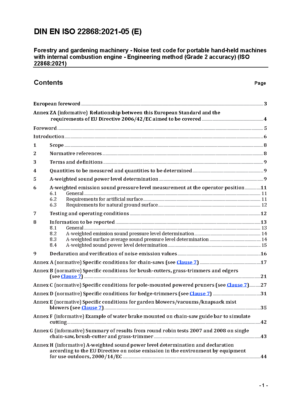 This noise test code specifies the information necessary to carry out efficiently and under standardised conditions the determination of the noise emission characteristics of portable hand-held, combustion engine powered forest machines including chain saws, brush-cutters, grass trimmers, edgers, pole-mounted powered pruners, hedge trimmers and garden blowers/vacuums/knapsack mist blowers. Noise emission characteristics include the A-weighted emission sound pressure level at the operator position and the A-weighted sound power level. Although the noise emission values determined are partly obtained in an artificial operation, they are representative of noise emission in a real work situation.