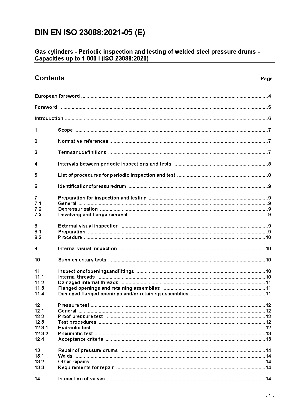 Gas cylinders - Periodic inspection and testing of welded steel pressure drums - Capacities up to 1 000 l (ISO 23088:2020); German version EN ISO 23088:2020