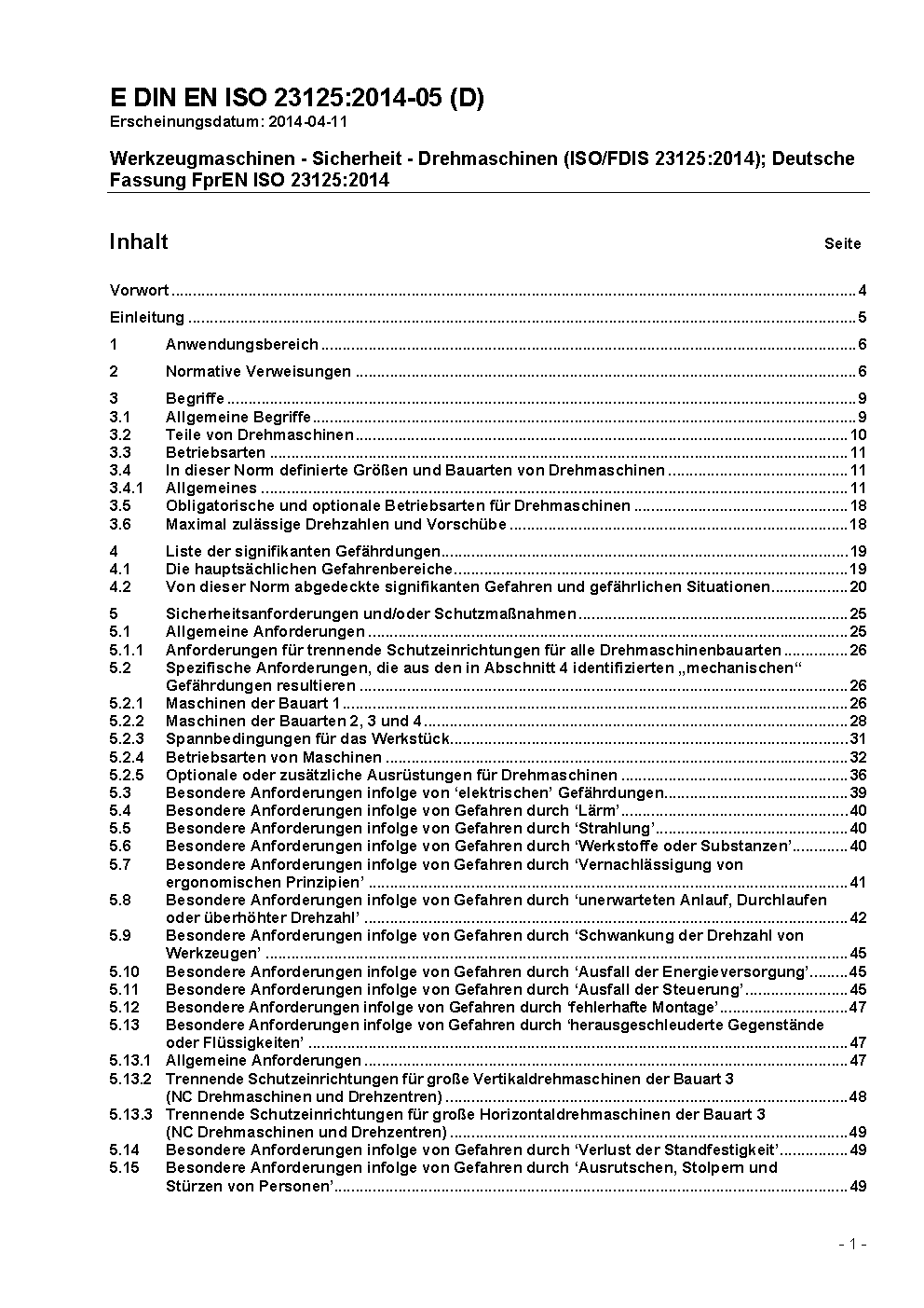 Machine tools - Safety - Turning machines (ISO 23125:2015); German version EN ISO 23125:2015