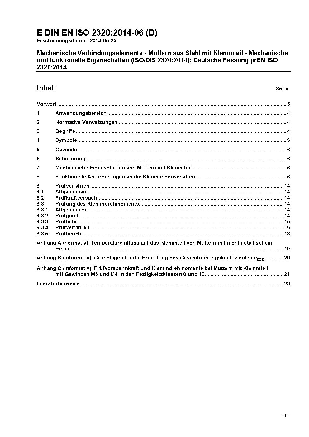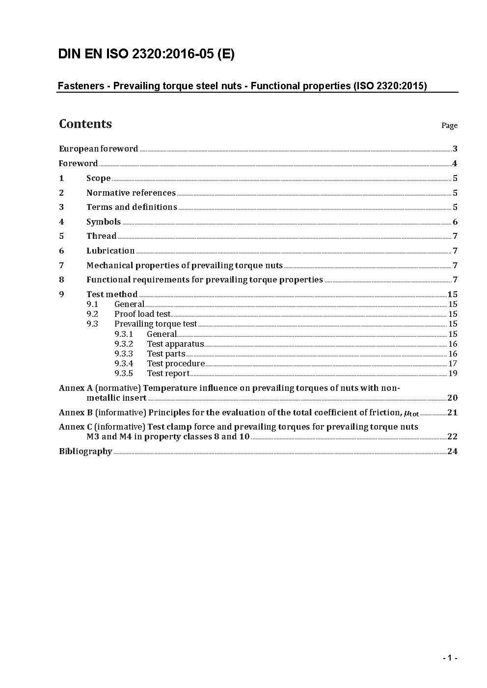 Fasteners - Prevailing torque steel nuts - Functional properties (ISO 2320:2015); German version EN ISO 2320:2015