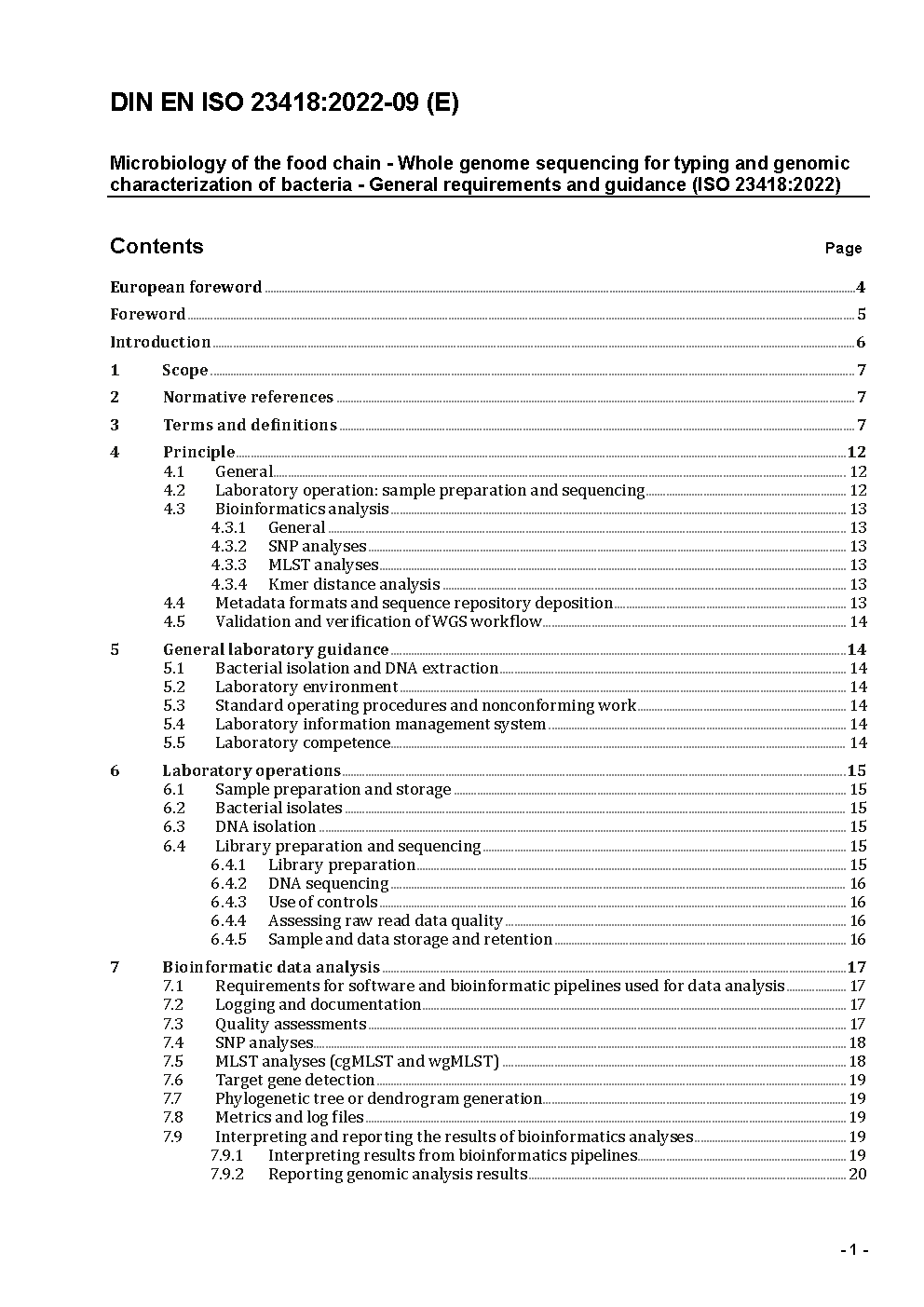 Mikrobiologie der Lebensmittelkette - Gesamtgenomsequenzierung zur Typisierung und genomischen Charakterisierung von Bakterien - Allgemeine Anforderungen und Leitfaden (ISO 23418:2022); Deutsche Fassung EN ISO 23418:2022