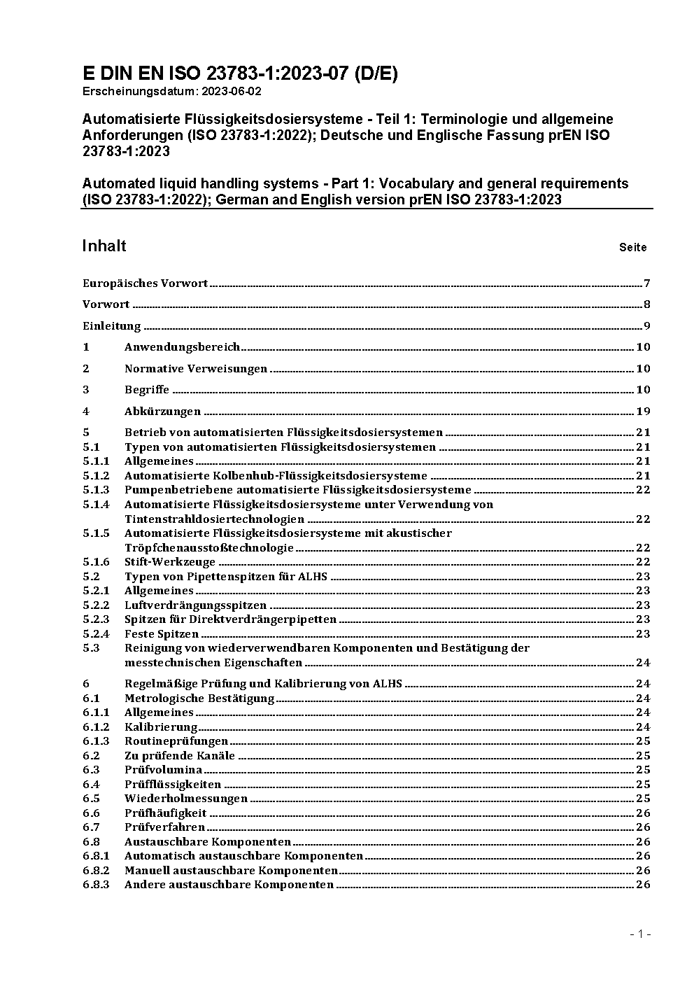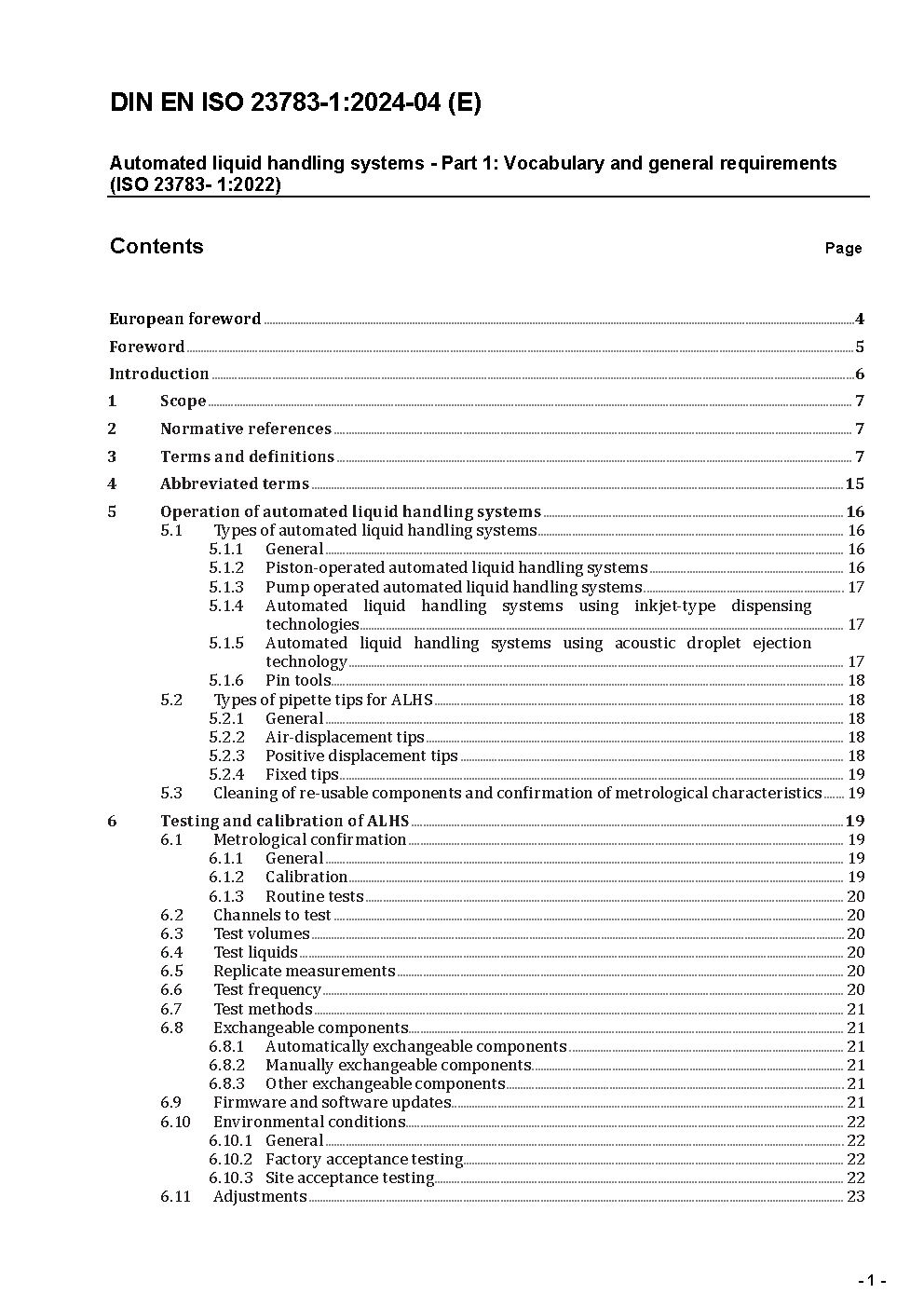 Automated liquid handling systems - Part 1: Vocabulary and general requirements (ISO 23783-1:2022); German version EN ISO 23783-1:2023