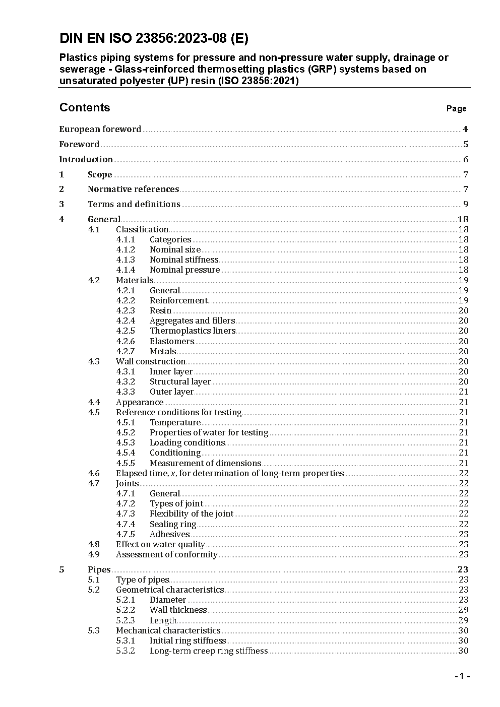Plastics piping systems for pressure and non-pressure water supply, drainage or sewerage - Glass-reinforced thermosetting plastics (GRP) systems based on unsaturated polyester (UP) resin (ISO 23856:2021); German version EN ISO 23856:2021.