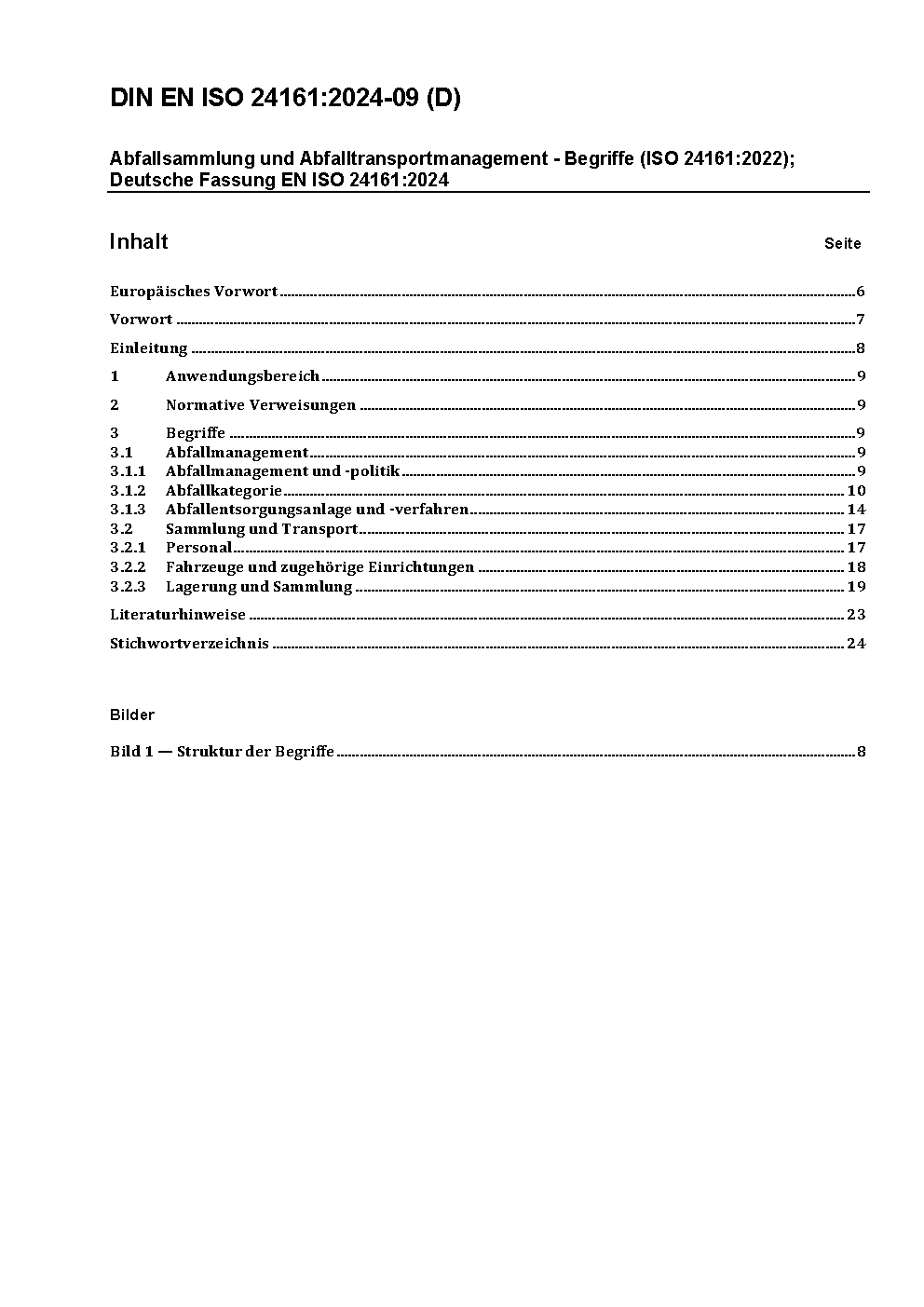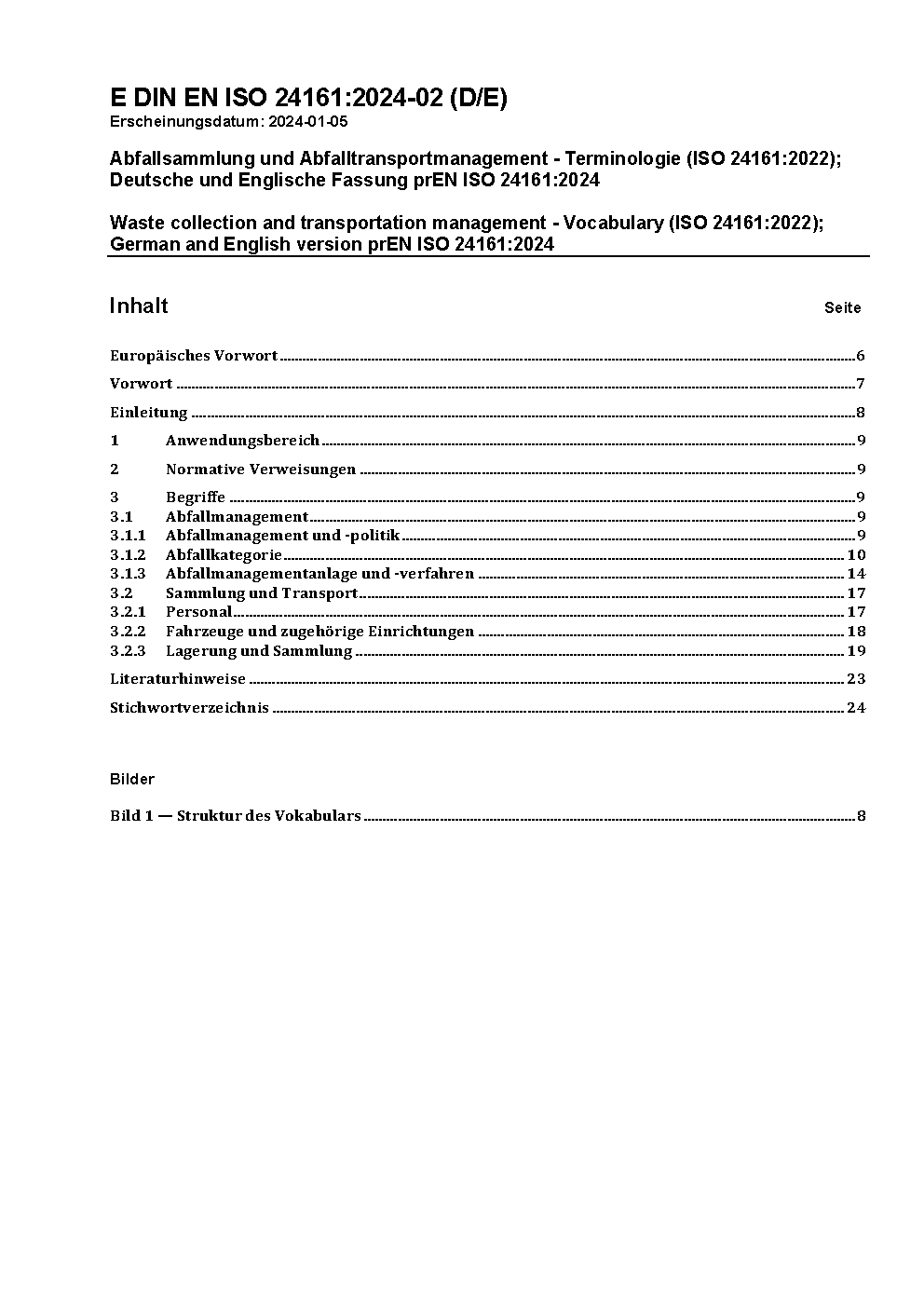 Waste collection and transportation management - Vocabulary (ISO 24161:2022); German and English version prEN ISO 24161:2024