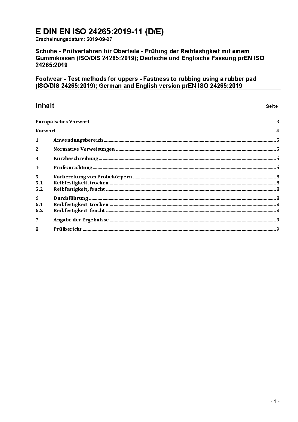 Footwear - Test methods for uppers - Fastness to rubbing using a rubber pad (ISO/DIS 24265:2019); German and English version prEN ISO 24265:2019