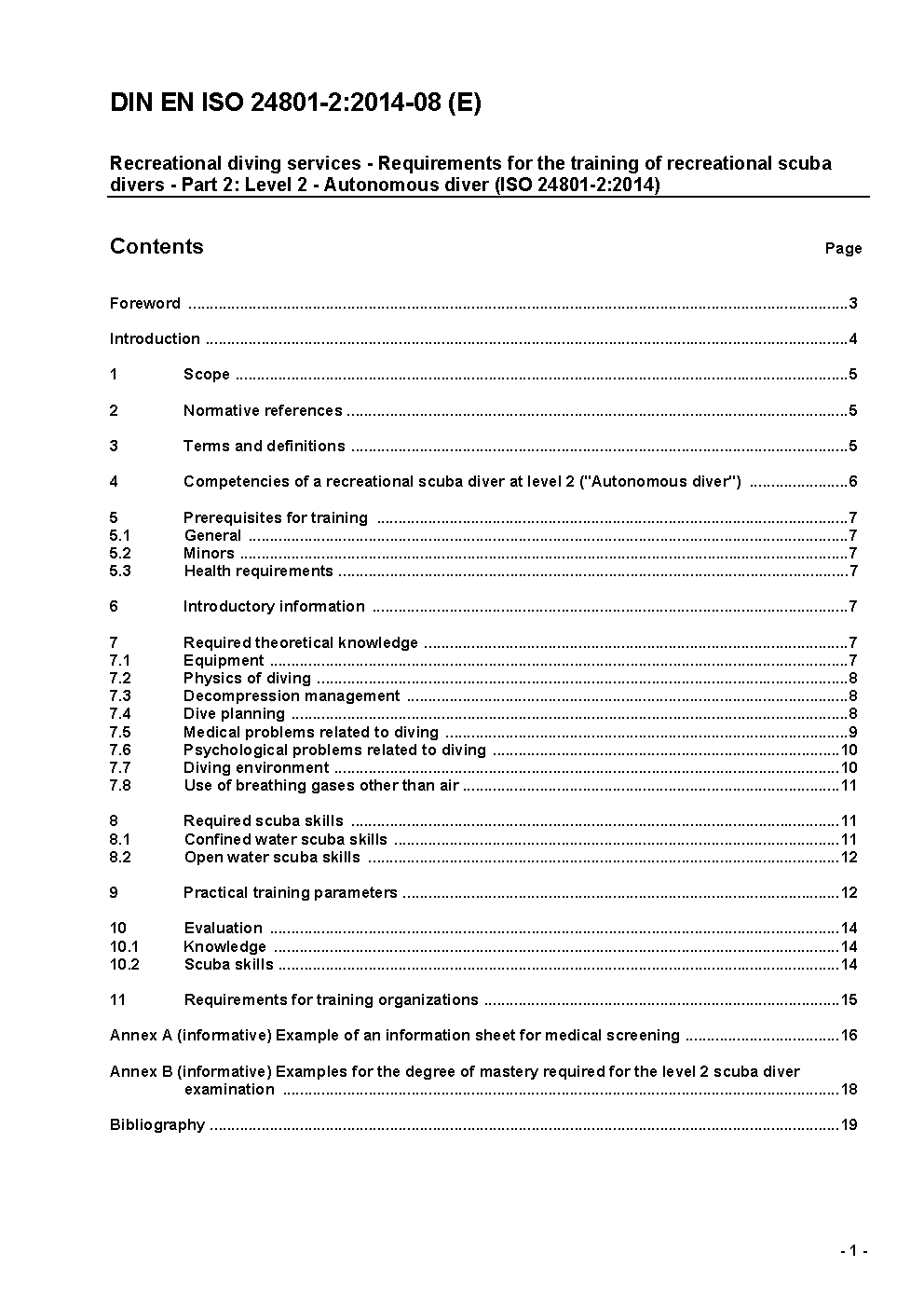 This International Standard specifies the competencies that a scuba diver has to have achieved in order for a training organisation to award the scuba diver qualification indicating that he has met or exceeded scuba diver level 2 ? ?Autonomous diver? and specifies evaluation criteria for these competencies.It also specifies conditions under which training has to be provided, in addition to the general requirements for recreational diving service provision specified in ISO 24803. This International Standard applies to training and evaluation in recreational scuba diving.