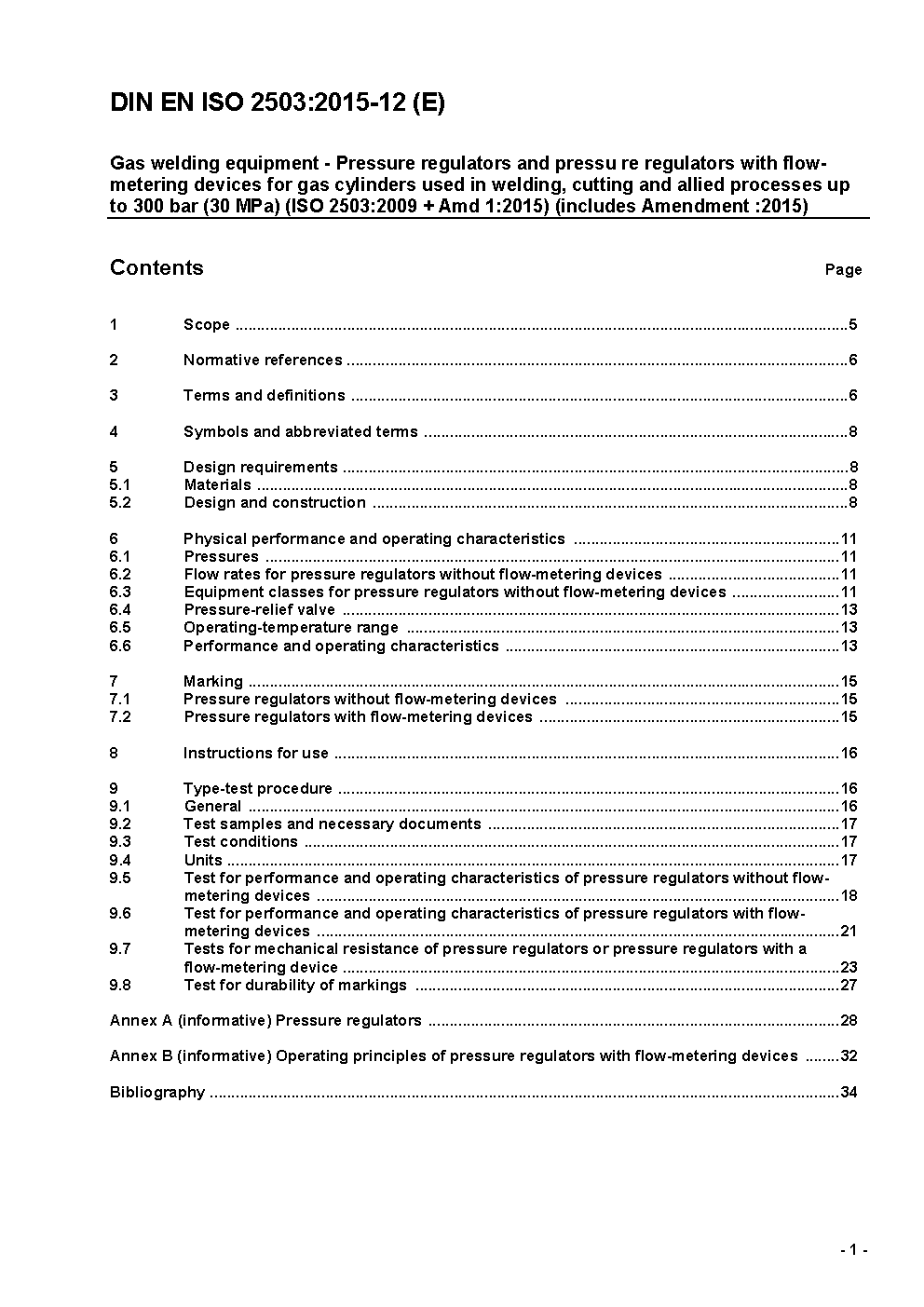 Gas welding equipment - Pressure regulators and pressure regulators with flow-metering devices for gas cylinders used in welding, cutting and allied processes up to 300 bar (30 MPa) (ISO 2503:2009/DAM 1:2013); German version EN ISO 2503:2009/prA1:2013