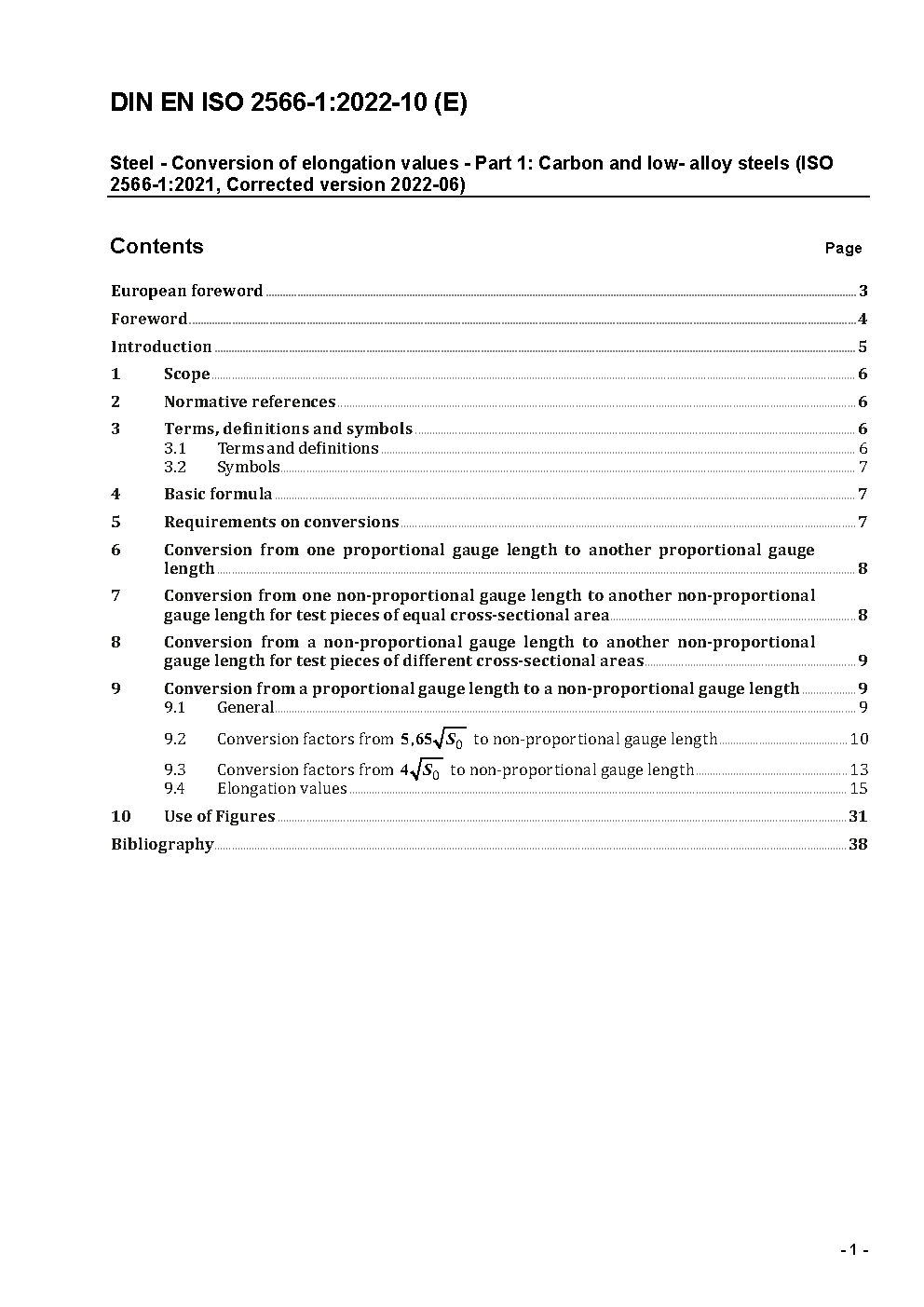 The document specifies a method of converting room temperature percentage elongations after fracture obtained on various proportional and non-proportional gauge length to other gauge lengths.