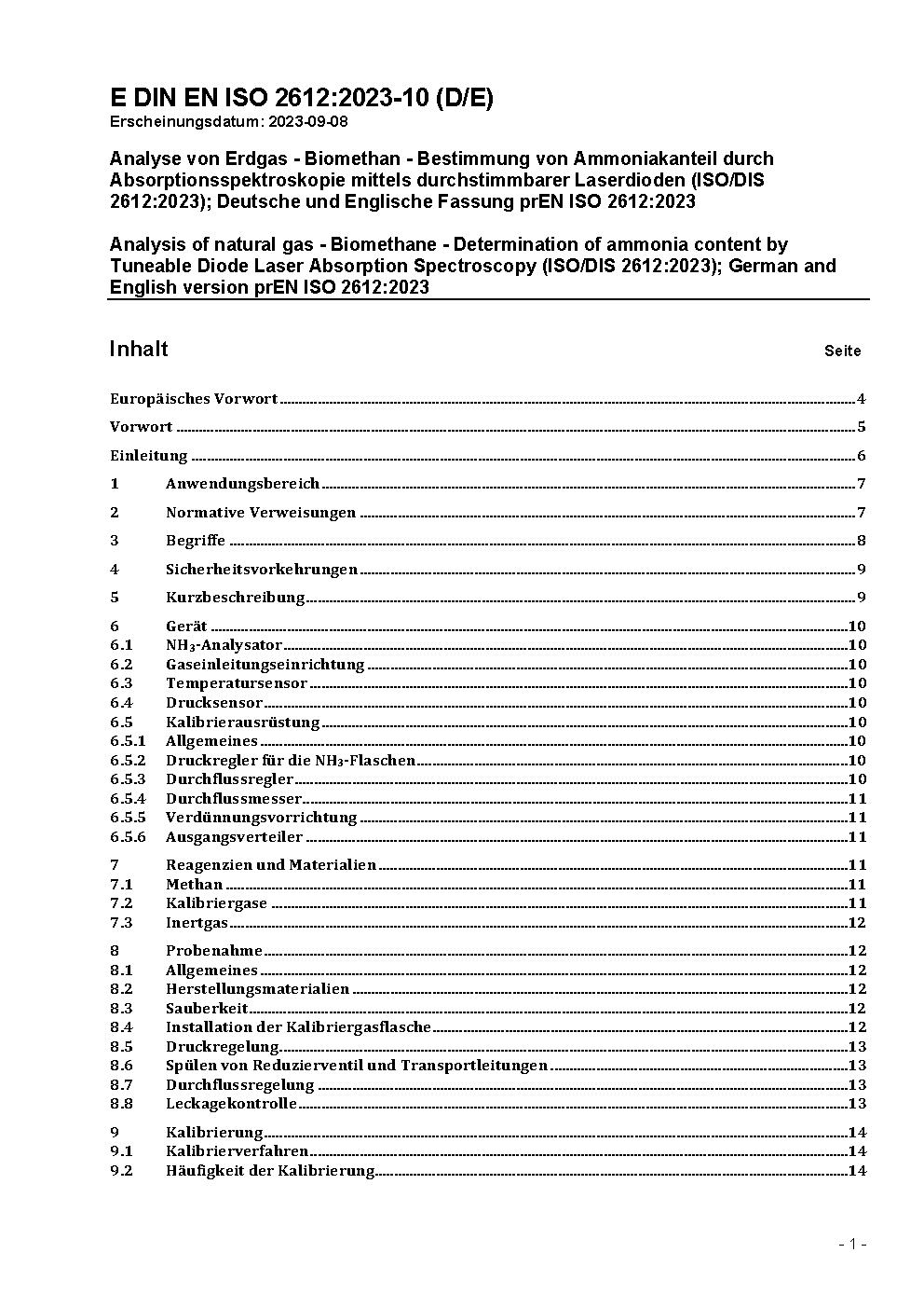 Analyse von Erdgas - Biomethan - Bestimmung von Ammoniakanteil durch Absorptionsspektroskopie mittels durchstimmbarer Laserdioden (ISO/DIS 2612:2023); Deutsche und Englische Fassung prEN ISO 2612:2023