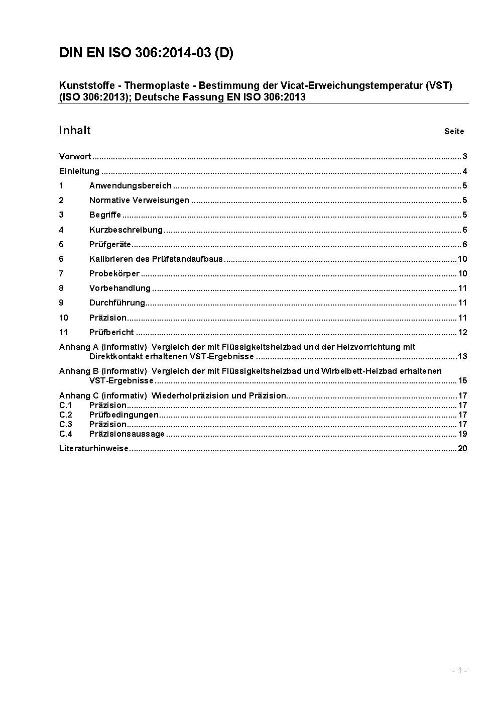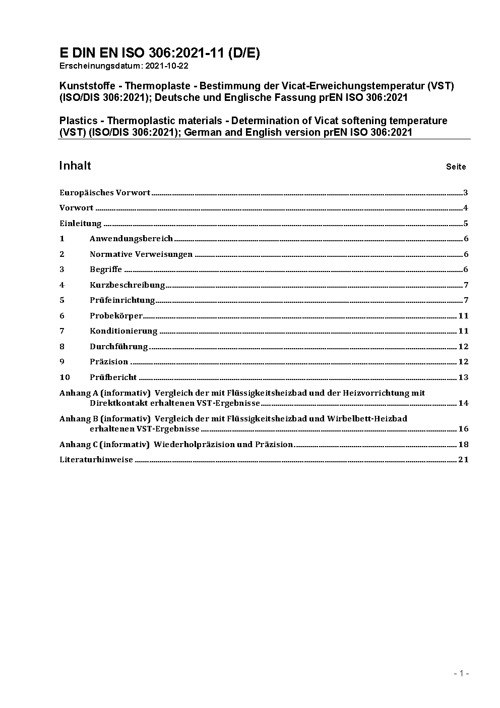 Plastics - Thermoplastic materials - Determination of Vicat softening temperature (VST) (ISO 306:2004); German version EN ISO 306:2004