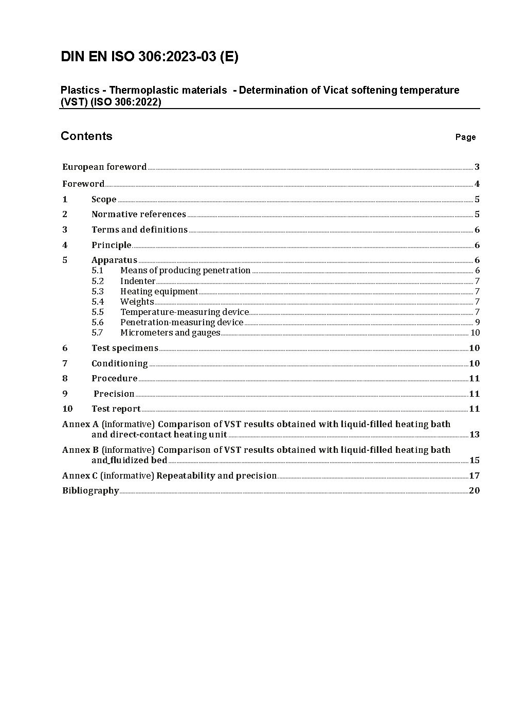 This Standard specifies four methods for the determination of the Vicat softening temperature (VST) of thermoplastic materials. The methods specified are applicable only to thermoplastics, for which they give a measure of the temperature at which the thermoplastics start to soften rapidly.