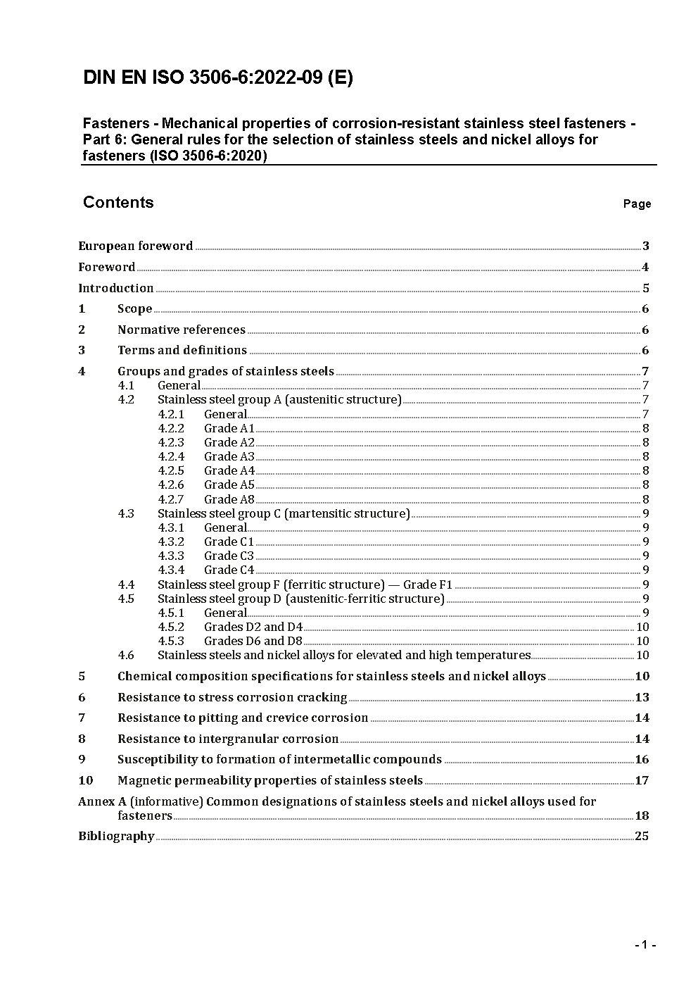 Fasteners - Mechanical properties of corrosion-resistant stainless steel fasteners - Part 6: General rules for the selection of stainless steels and nickel alloys for fasteners (ISO 3506-6:2020); German version EN ISO 3506-6:2022