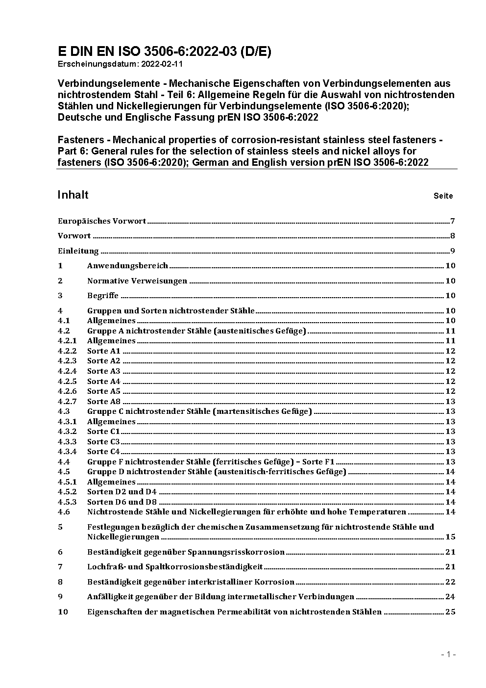 Mechanische Verbindungselemente - Mechanische Eigenschaften von Verbindungselementen aus korrosionsbeständigen nichtrostenden Stählen - Teil 6: Allgemeine Regeln für die Auswahl von nichtrostenden Stählen und Nickellegierungen für Verbindungselemente (ISO 3506-6:2020); Deutsche Fassung EN ISO 3506-6:2022