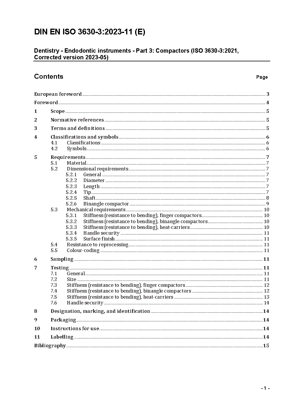 Dentistry - Endodontic instruments - Part 3: Compactors: pluggers and spreaders (ISO 3630-3:2015); German version EN ISO 3630-3:2015