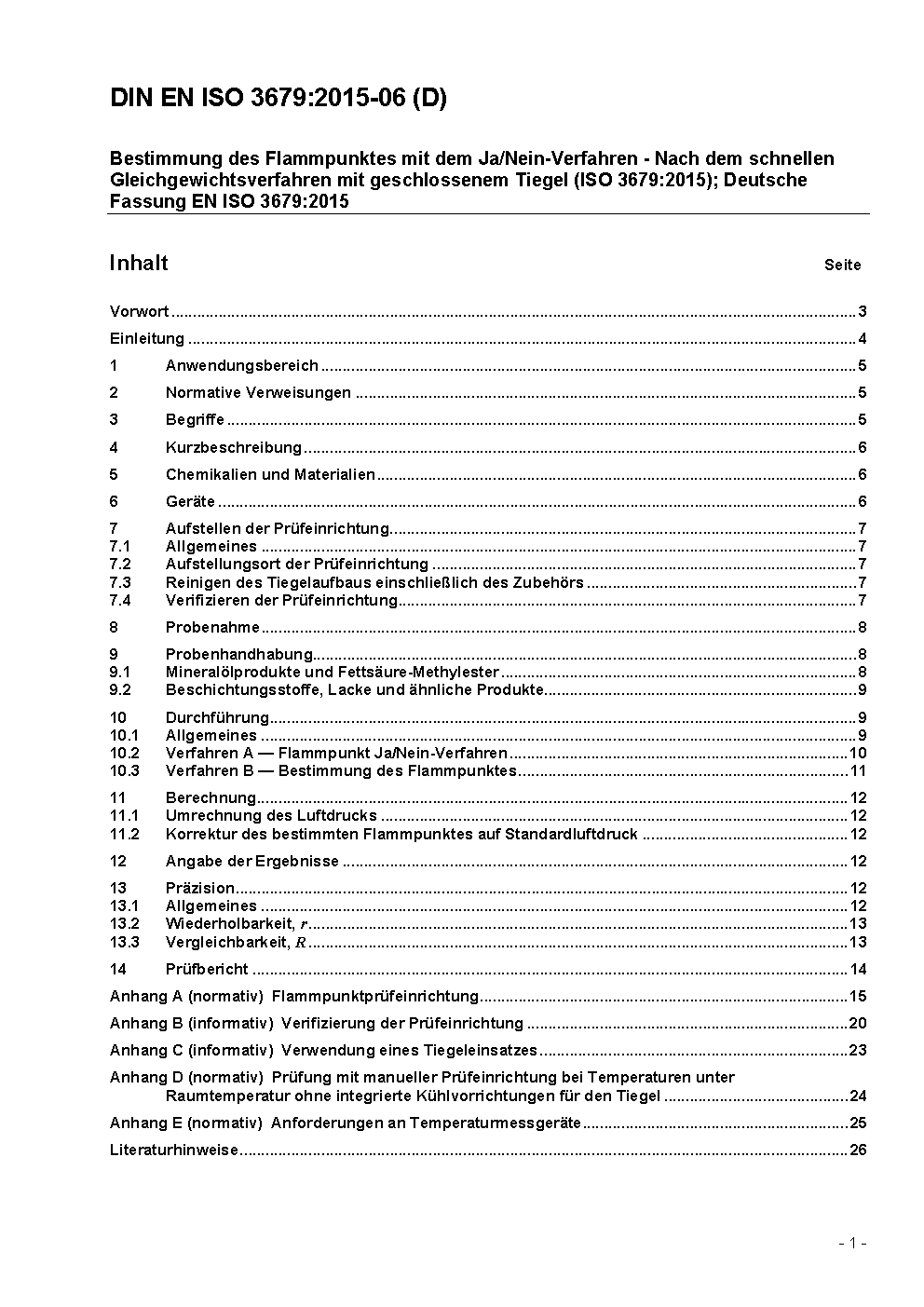 Determination of flash no-flash and flash point - Rapid equilibrium closed cup method (ISO/DIS 3679:2013); German version prEN ISO 3679:2013