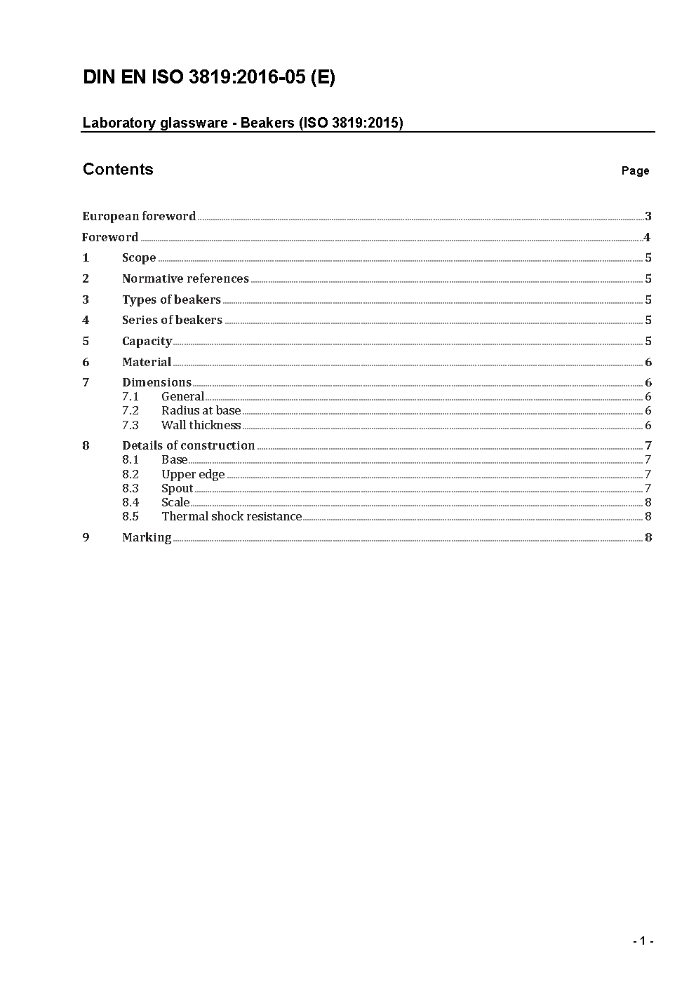 This European Standard specifies requirements and dimensions for an internationally acceptable series of glass beakers (high and low form) manufactured from borosilicateglass 3.3 for laboratory use.