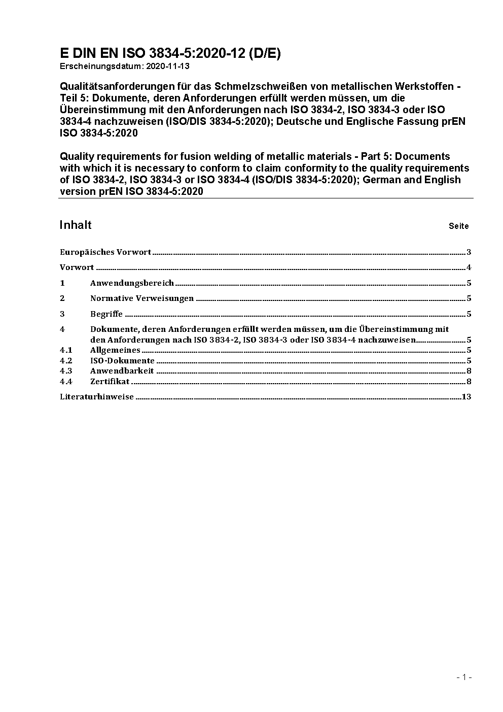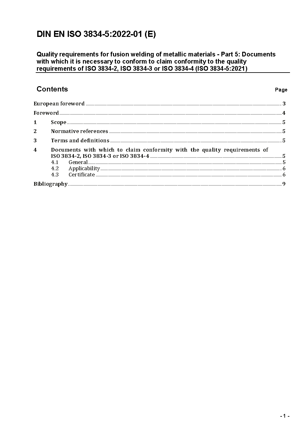 This part of ISO 3834 specifies the documents with which it is necessary to conform to claim conformity to the quality requirements of ISO 3834-2, ISO 3834-3 or ISO 3834-4. It can only be used in conjunction with ISO 3834-2, ISO 3834-3 or ISO 3834-4.