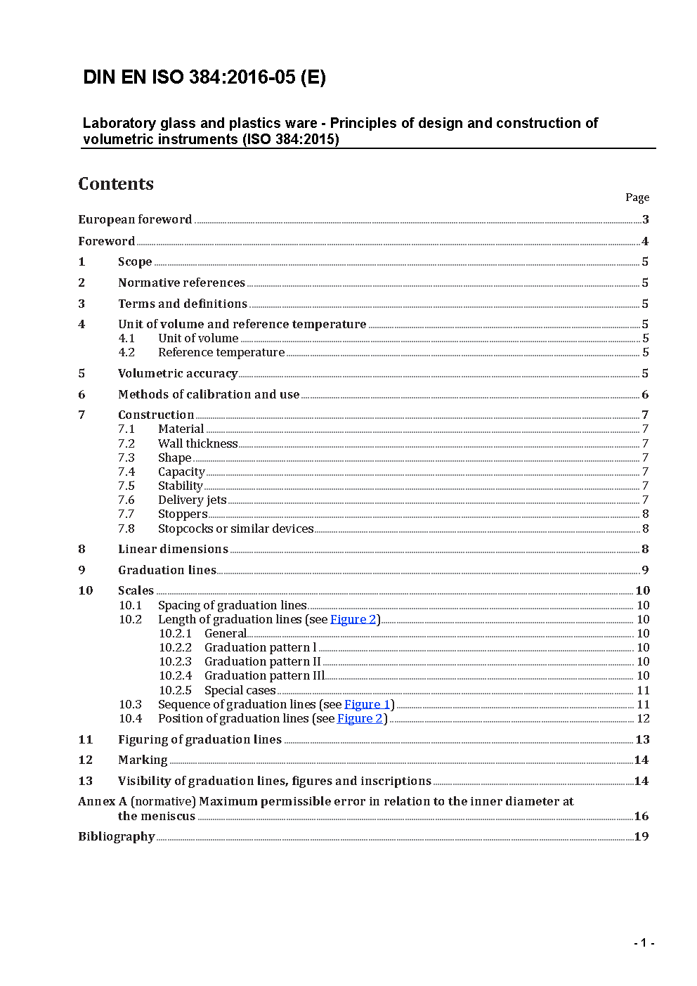 Laboratory glass and plastics ware - Principles of design and construction of volumetric instruments (ISO 384:2015); German version EN ISO 384:2015