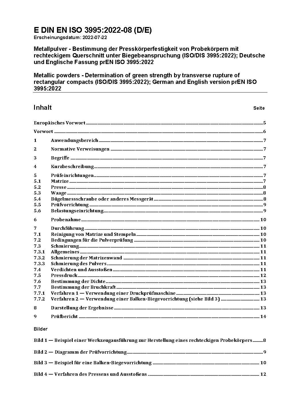 Metallpulver - Bestimmung der Presskörperfestigkeit von Probekörpern mit rechteckigem Querschnitt unter Biegebeanspruchung (ISO 3995:2023); Deutsche Fassung EN ISO 3995:2023