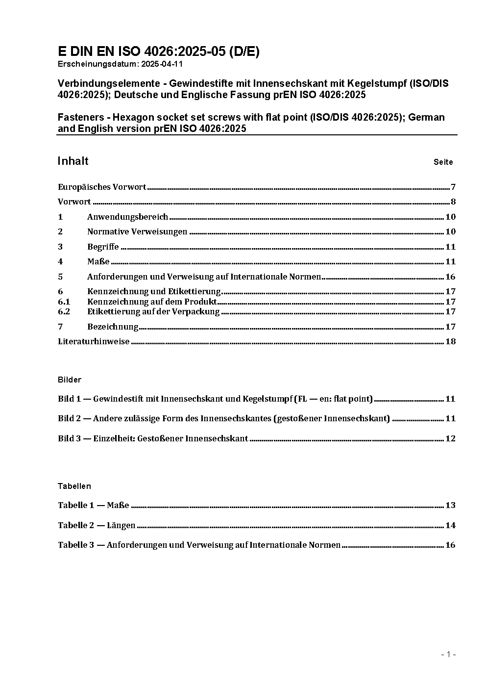 Hexagon socket set screws with flat point (ISO 4026:2003); German version EN ISO 4026:2003