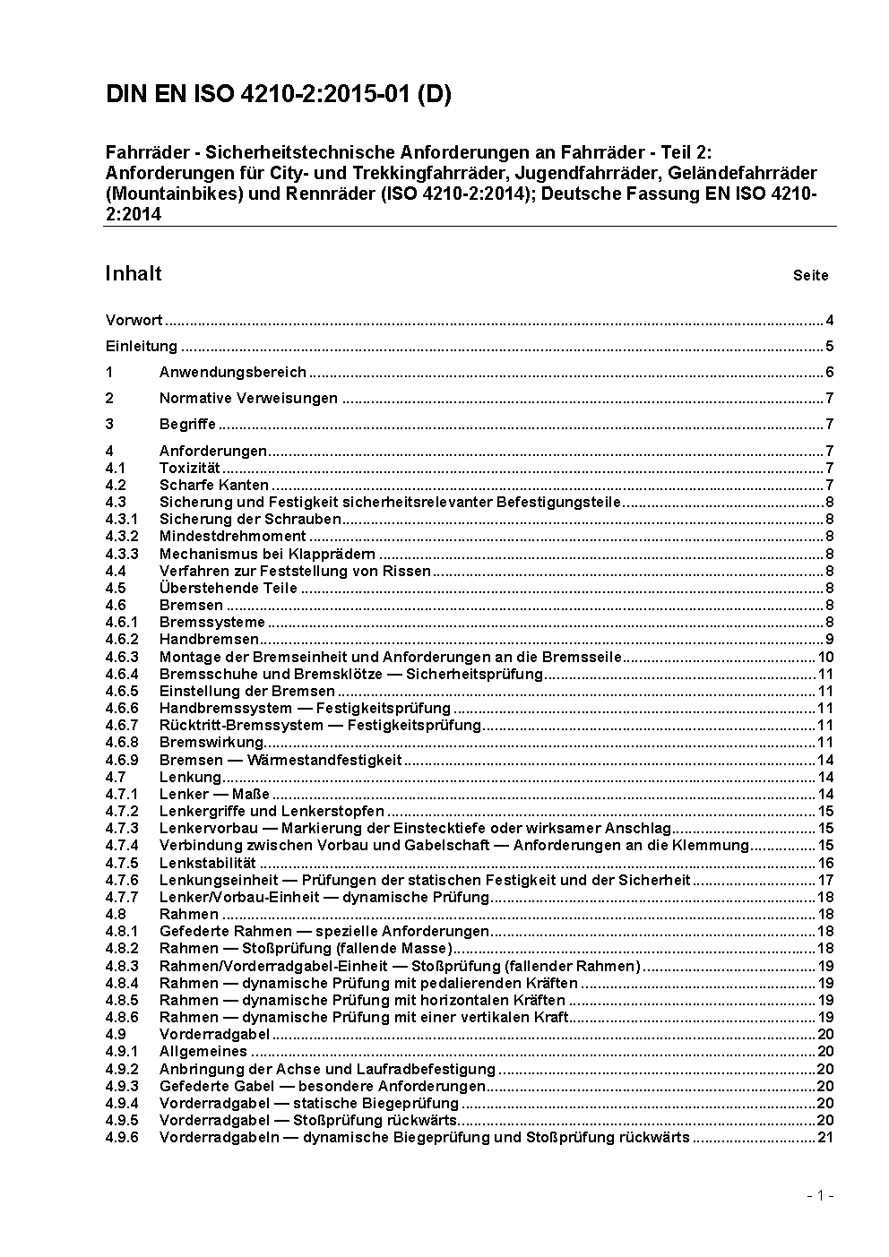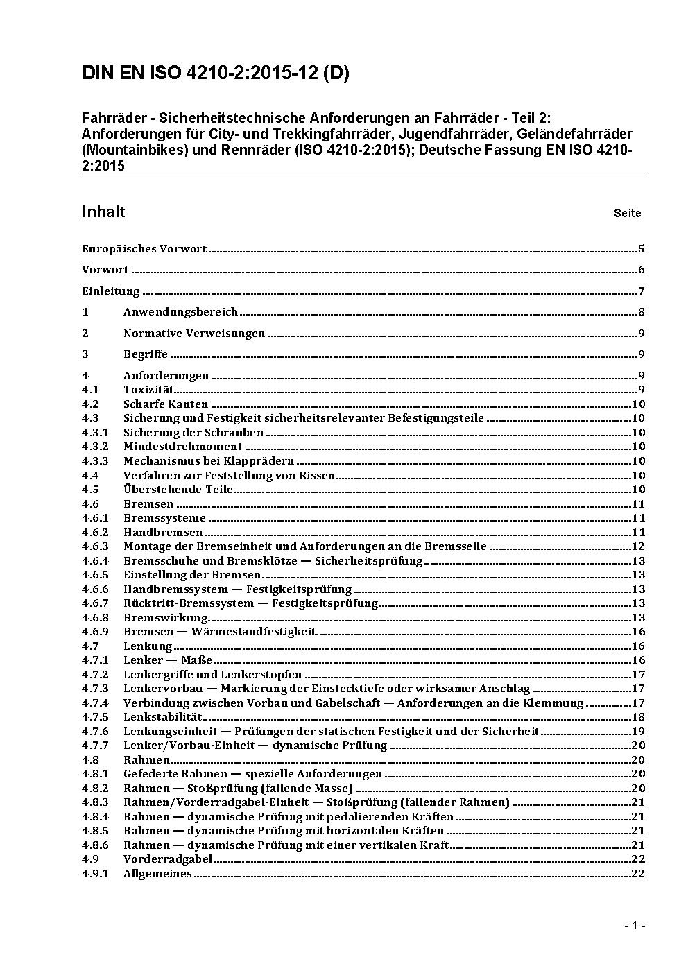 Prévu pour remplacer DIN EN ISO 4210-2 (2015-01).