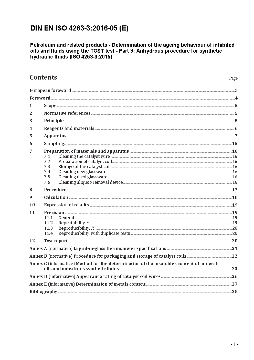 Petroleum and related products - Determination of the ageing behaviour of inhibited oils and fluids using the TOST test - Part 3: Anhydrous procedure for synthetic hydraulic fluids (ISO 4263-3:2010); German version EN ISO 4263-3:2010