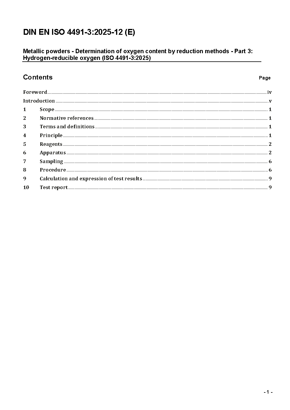 Metallic powders - Determination of oxygen content by reduction methods - Part 3: Hydrogen-reducible oxygen (ISO 4491-3:1997); German version EN ISO 4491-3:2006