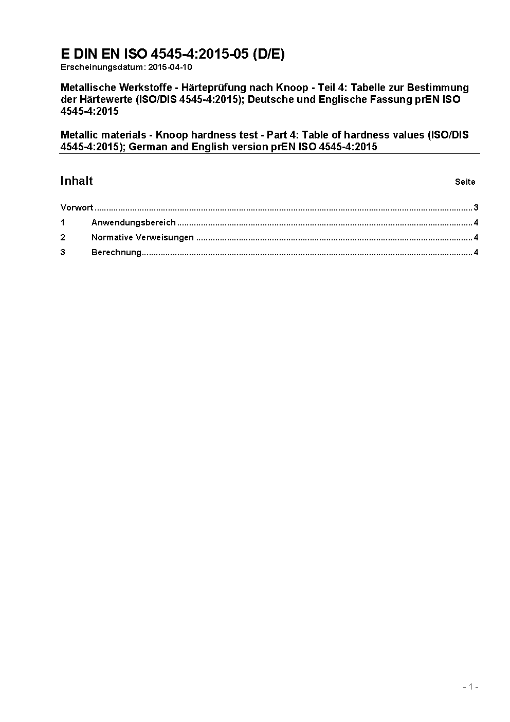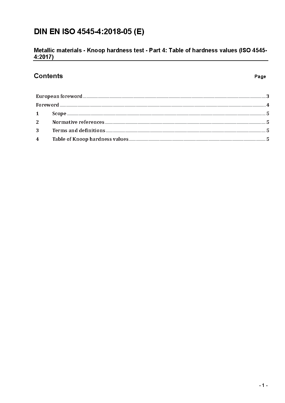 Metallic materials - Knoop hardness test - Part 4: Table of hardness values (ISO 4545-4:2005); German version EN ISO 4545-4:2005