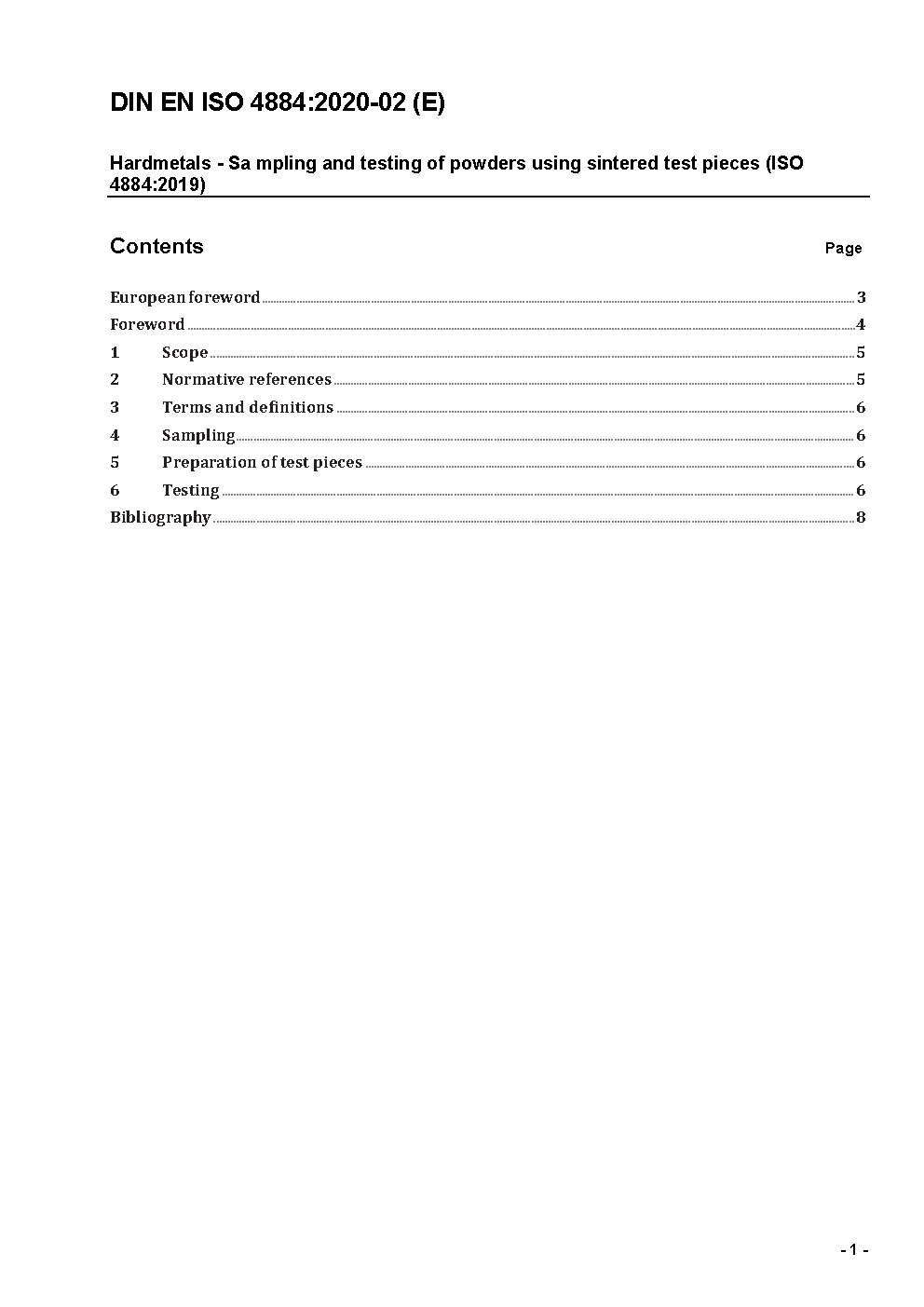 Hardmetals - Sampling and testing of powders using sintered test pieces (ISO/DIS 4884:2018); German and English version prEN ISO 4884:2018