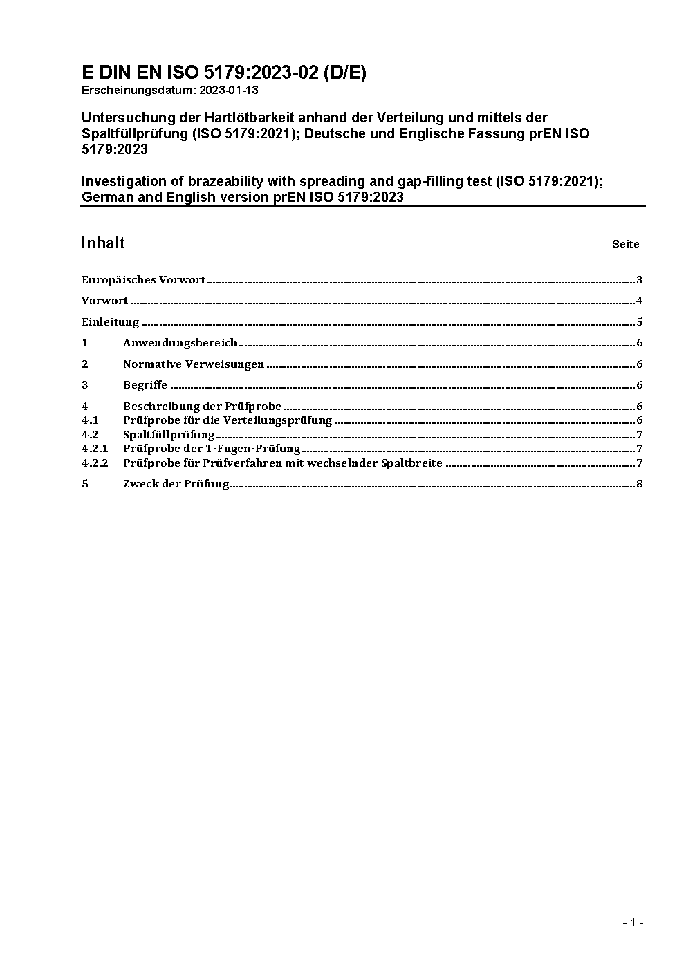 Investigation of brazeability with spreading and gap-filling test (ISO 5179:2021); German version EN ISO 5179:2023
