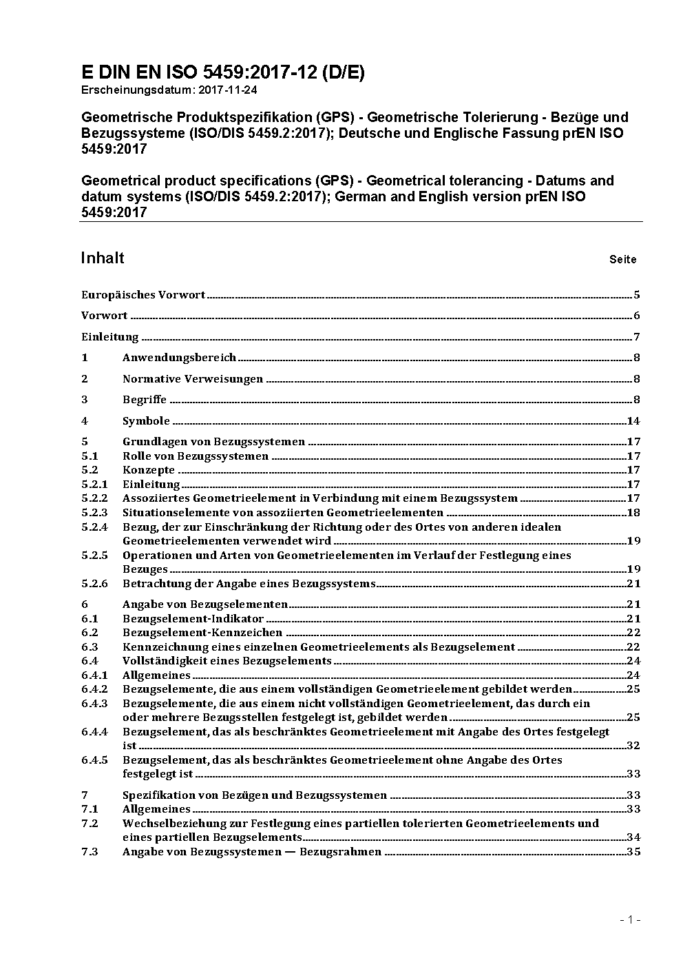 Geometrical product specifications (GPS) - Geometrical tolerancing - Datums and datum systems (ISO/DIS 5459.2:2017); German and English version prEN ISO 5459:2017