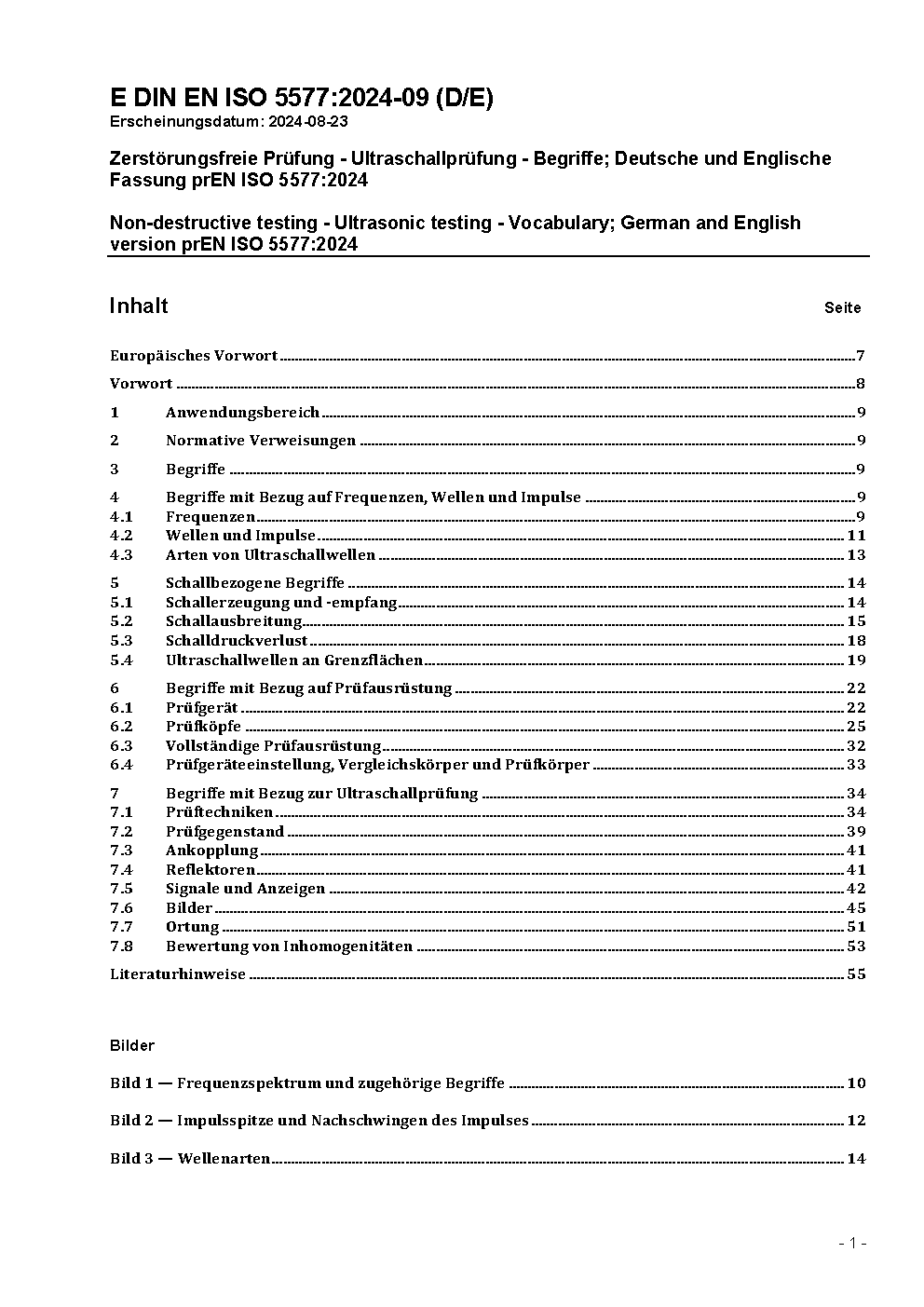 Zerstörungsfreie Prüfung - Ultraschallprüfung - Begriffe; Deutsche und Englische Fassung prEN ISO 5577:2024