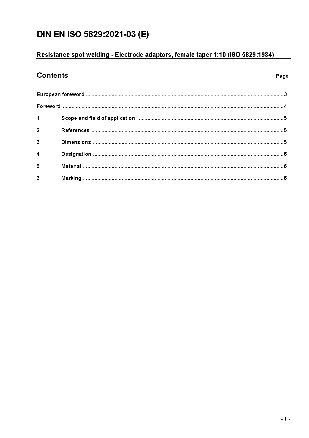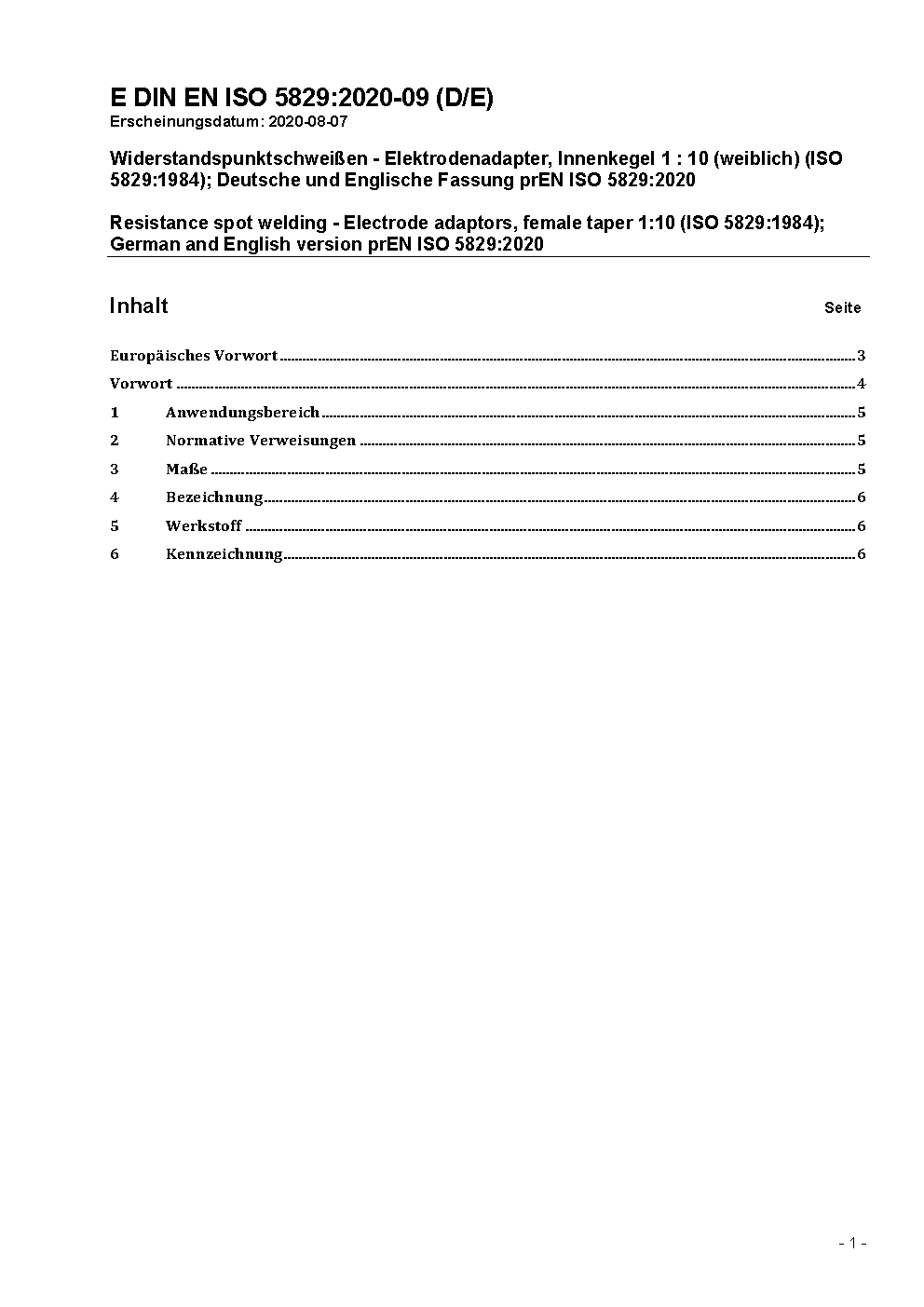 Resistance spot welding - Electrode adaptors, female taper 1:10 (ISO 5829:1984); German version EN ISO 5829:2021