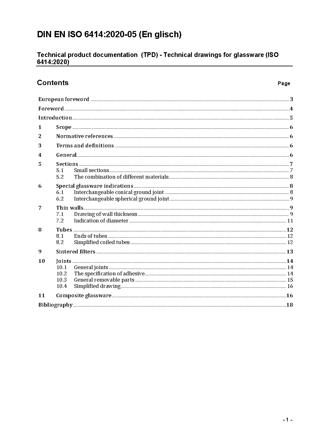 Technische Produktdokumentation (TPD) - Technische Zeichnungen für Glasgeräte (ISO 6414:2020); Deutsche Fassung EN ISO 6414:2020