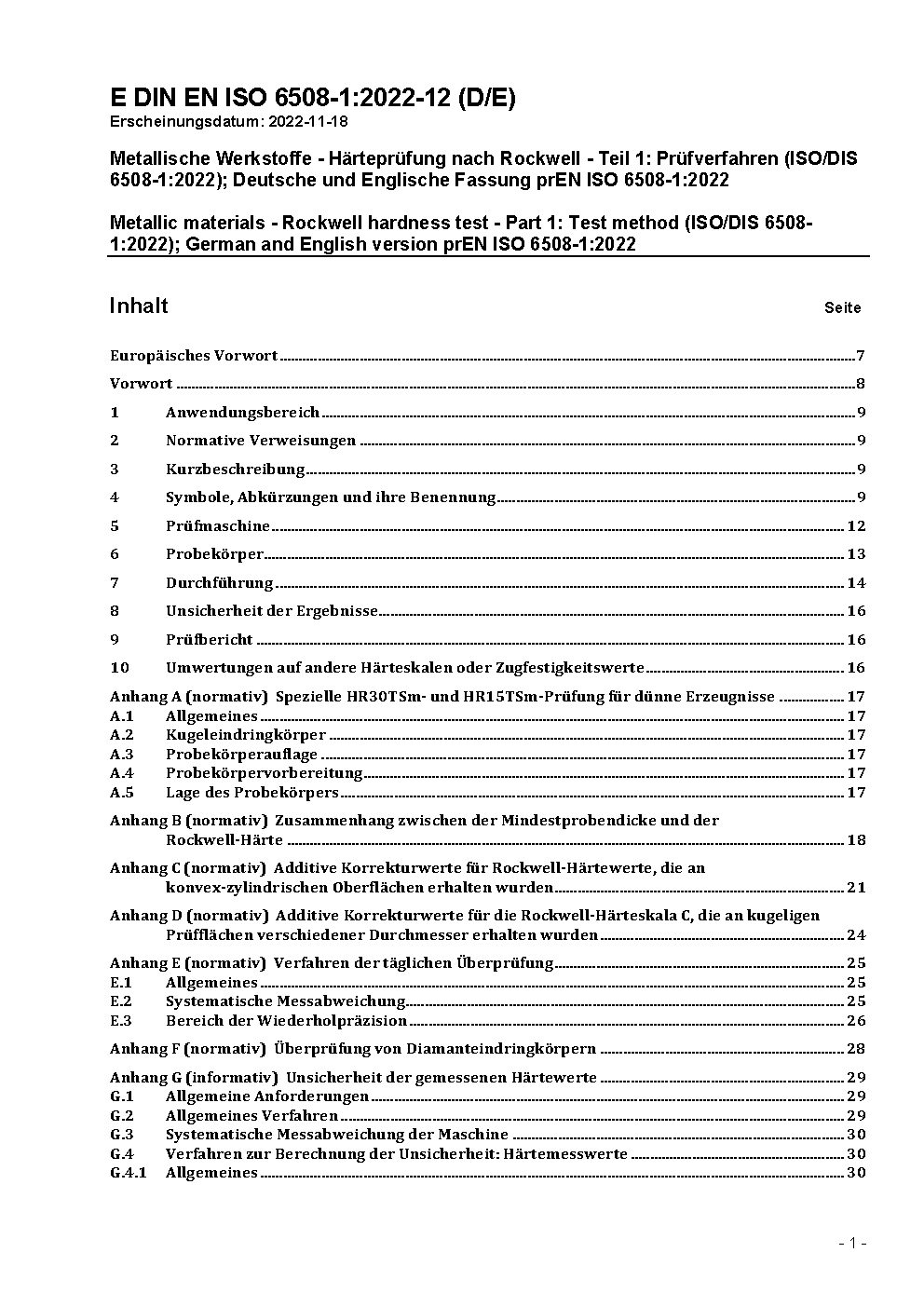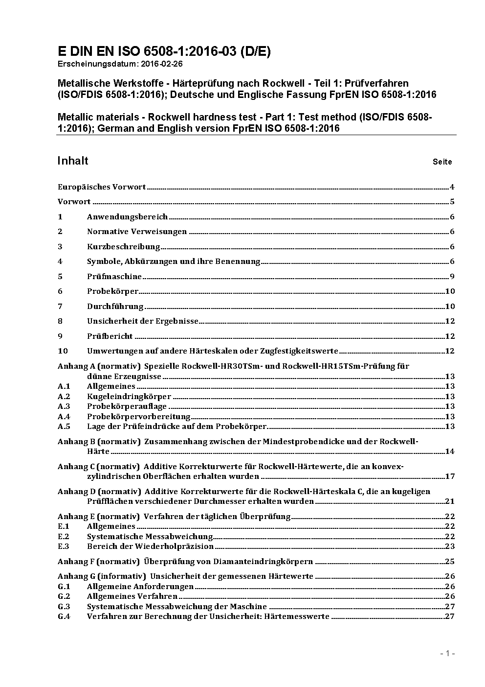 Prévu pour remplacer DIN EN ISO 6508-1 (2006-03).