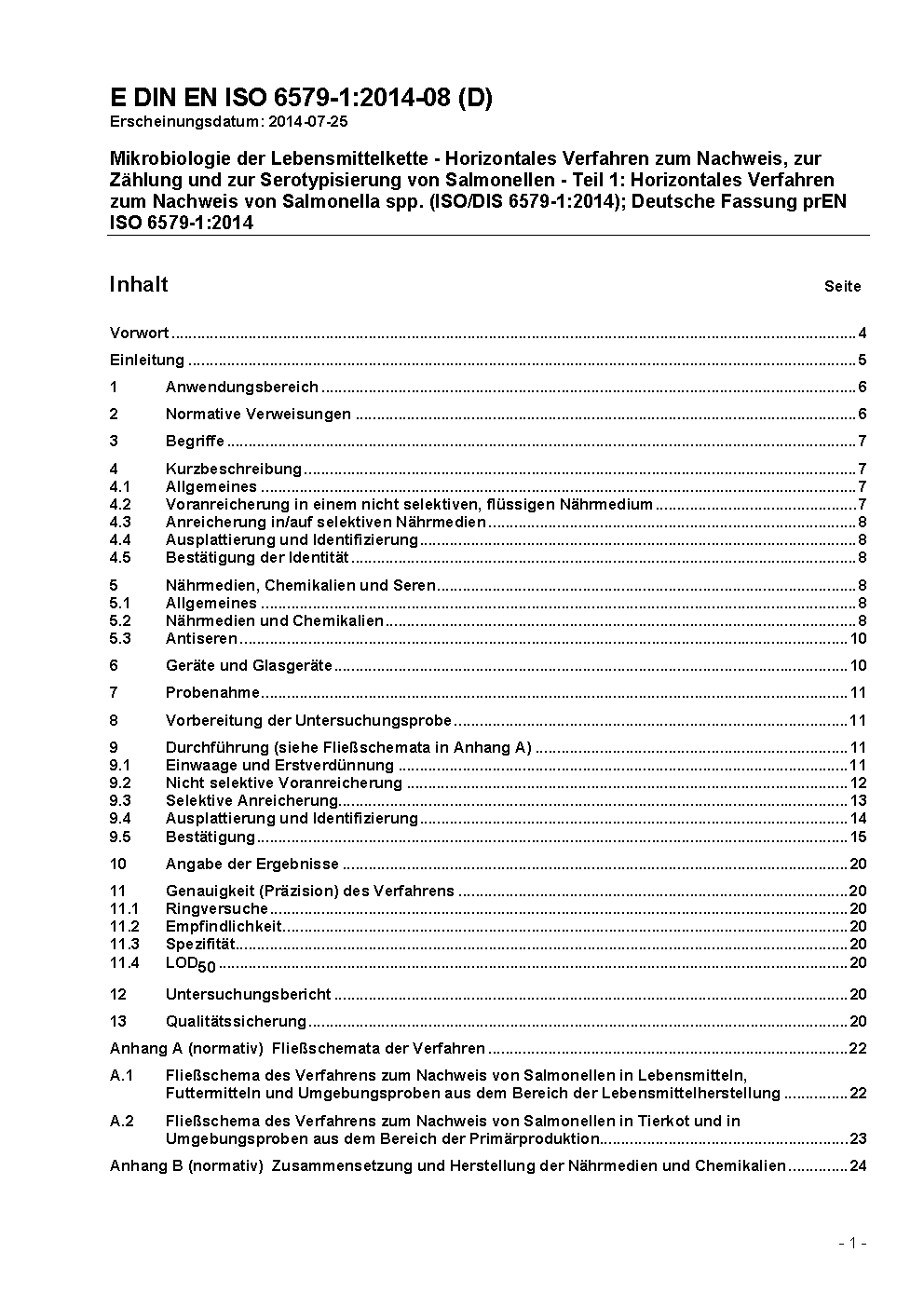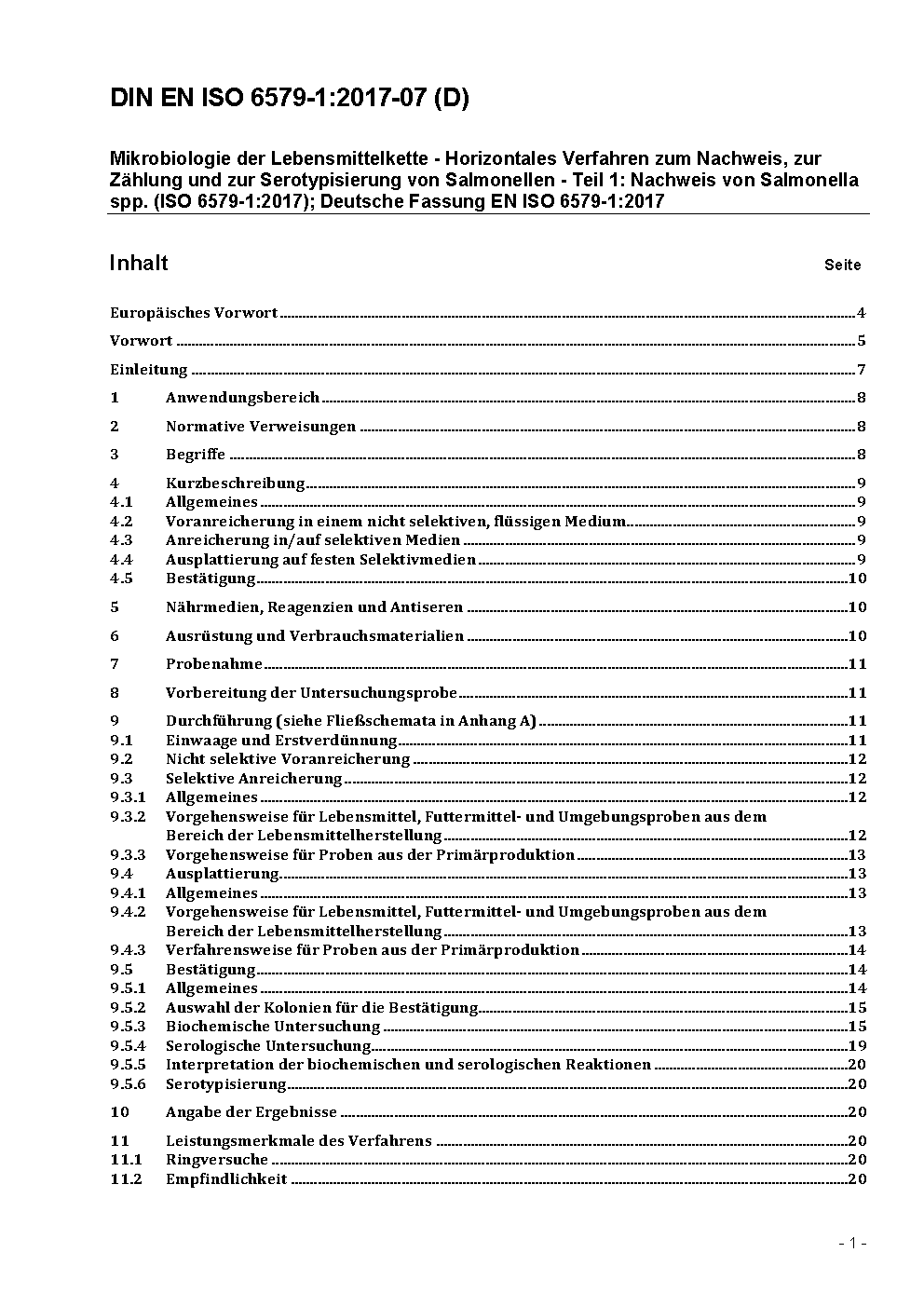 Microbiology of the food chain - Horizontal method for the detection, enumeration and serotyping of Salmonella - Part 1: Detection of Salmonella spp. (ISO 6579-1:2017); German version EN ISO 6579-1:2017