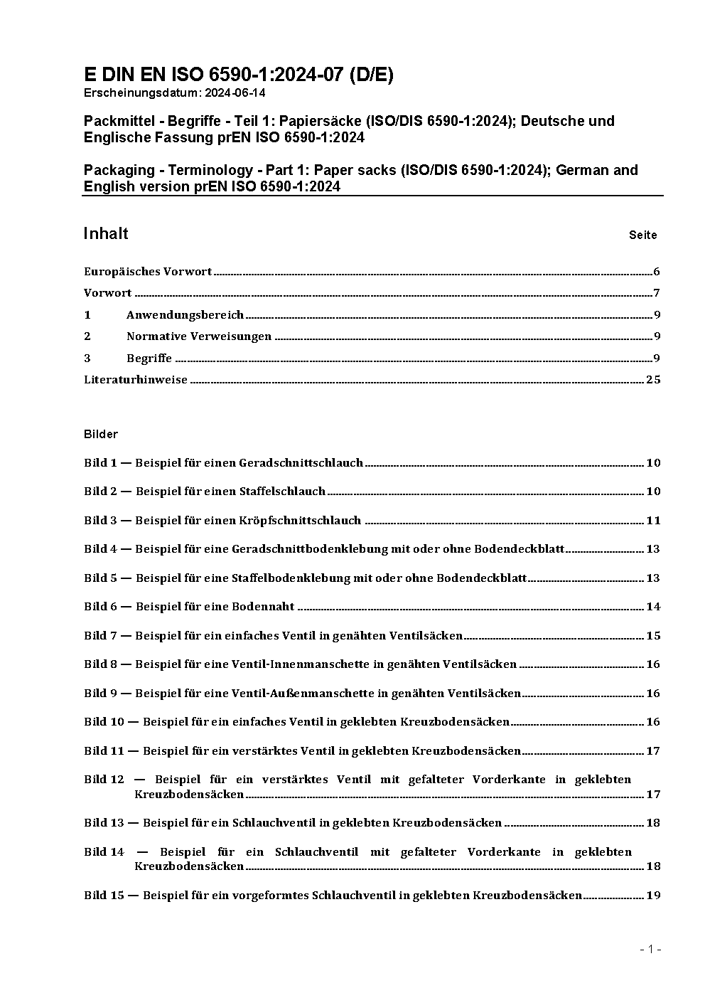 Packaging - Terminology - Part 1: Paper sacks (ISO/DIS 6590-1:2024); German and English version prEN ISO 6590-1:2024