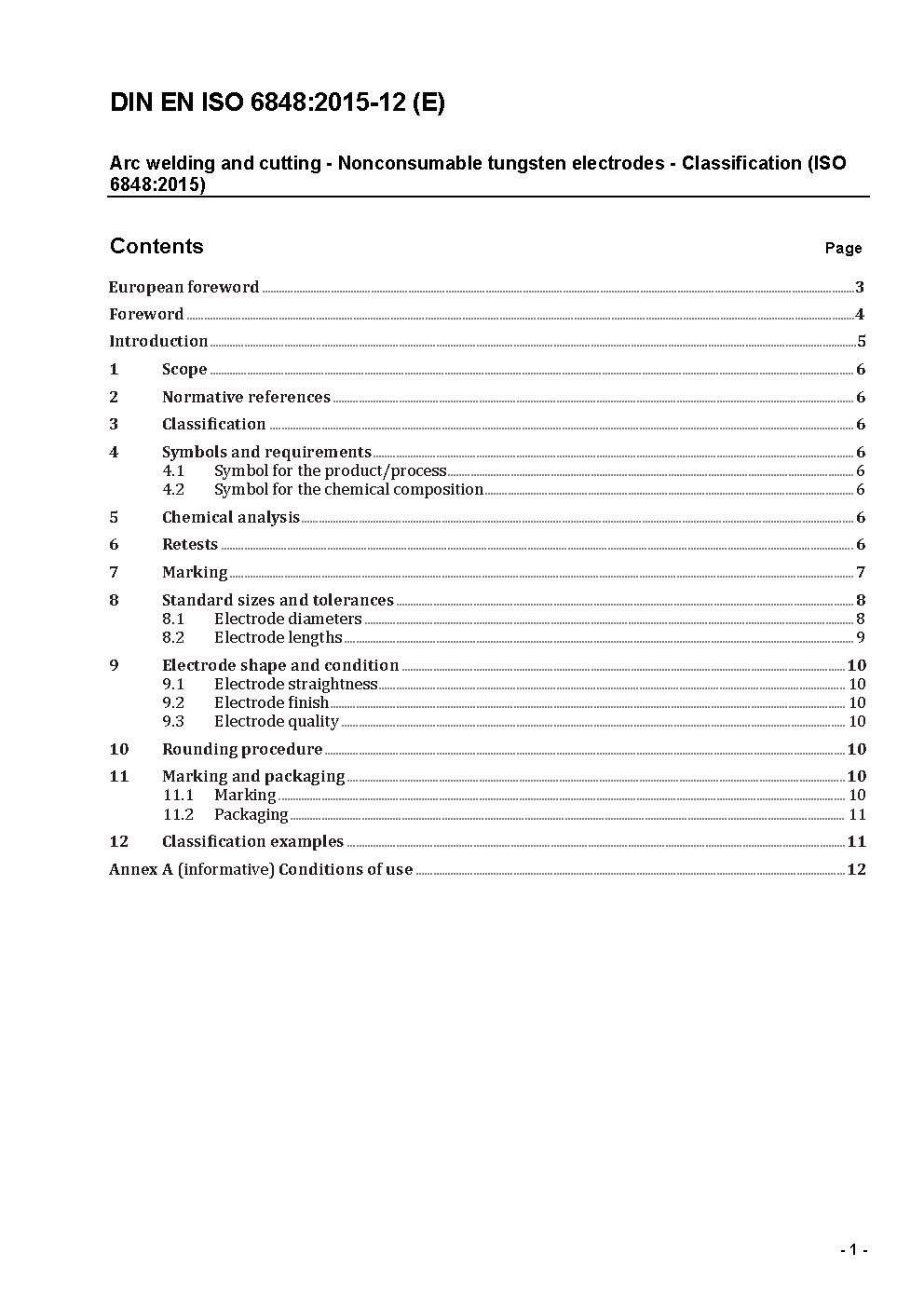 This International Standard specifies requirements for classification of nonconsumable tungsten electrodes for inert gas shielded arc welding, and for plasma welding, cutting and thermal spraying.